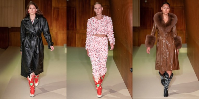 The music began, and once the lights came on, Cecilie Bahnsen‘s signature romance was illuminated. Of course there were all the beautiful, fluffy ball skirts and big sleeves, sculpted with delicate silk organza. Still, this season the Copenhagen-based designer slightly stepped away from her saccharine dreaminess. There was a fresh edge to Bahnsen’s new work, thanks to the mix of metallic materials and to more form-fitting, corseted silhouettes that added a sensual and bewitching quality to her designs. Crisp, fitted blazers were styled with cloudlike dresses and sheer A-line skirts, and Bahnsen also expanded into knitwear with ribbon- and ruffle-bedecked sweaters that could be worn as easily with jeans as they could be layered over one of her voluminous dresses. Outerwear was crucial to the collection. Bahnsen collaborated with British luxury heritage brand Mackintosh and showed minimal anoraks alongside cocooning quilted coats with floral embroidery. That’s a great lesson in layering. Bahnsen is one of the most skilled designers in the city and this season she really pushed herself and her talents to the next level.i