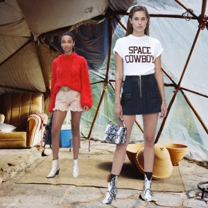 Phipps’s work is grounded in reality; he extracts elements of American subcultures—western, grunge, punk – and reimagines them through a contemporary lens modeled on a diverse cast of characters including real cowboys, bikers, and one multi-hyphenate jiu jitsu black belt-magician-guitarist. The designer ties the brand divisions together through cohesive design and layered styling. For the new season, the influence of Richard Avedon’s American West series came across in blanket capes and chap jeans crafted from upcycled leather scraps and vintage denim, whereas grommets and d-rings spoke to the influence of the ’50s teens in Karlheinz Weinberger’s photography. Standout pieces from the new womenswear included long, straight, slouchy jeans and a deadstock pullover anorak paired with a camouflage midi skirt. On the men’s side, there were “butch florals” in the form of camouflage patterns and subtle hieroglyphs representative of the four archetypes of masculinity – the king, warrior, magician, and lover. “We’ve always been doing our own thing and will continue to do so,” he said. “Our voice stood out in the Paris landscape and I believe the same will happen here, but with a bigger community.”