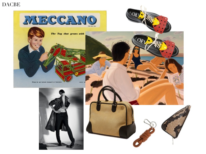Inspirations: Meccano blocks, Alex Katz beach paintings. The shoes, bag, keyholder and purse from new collection.