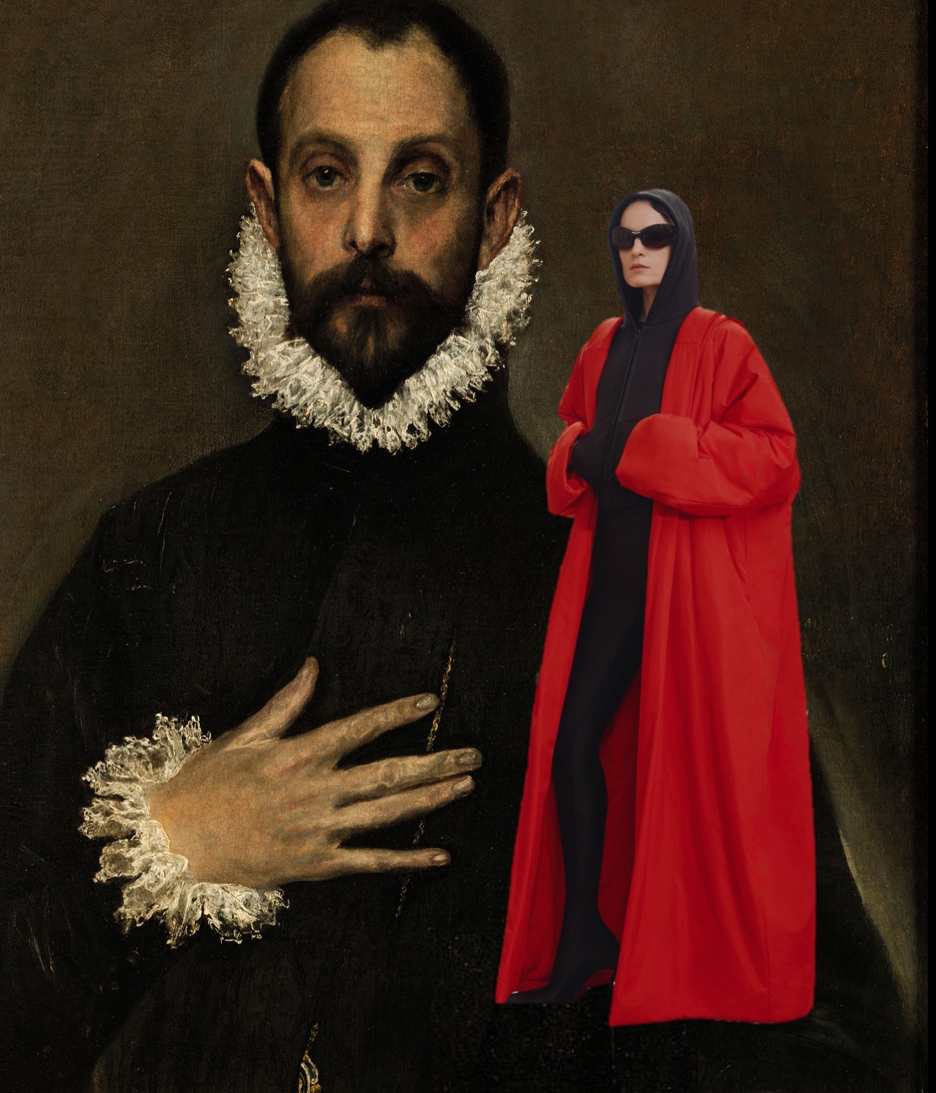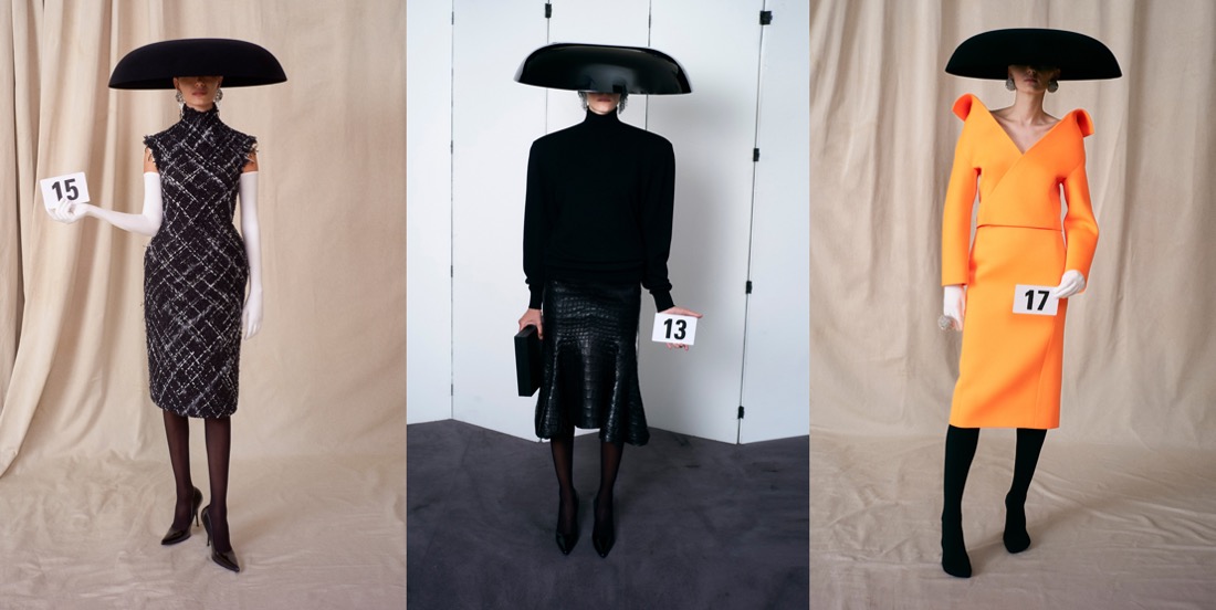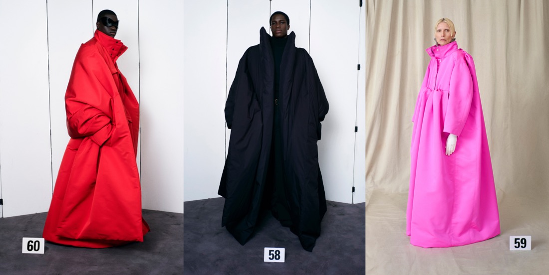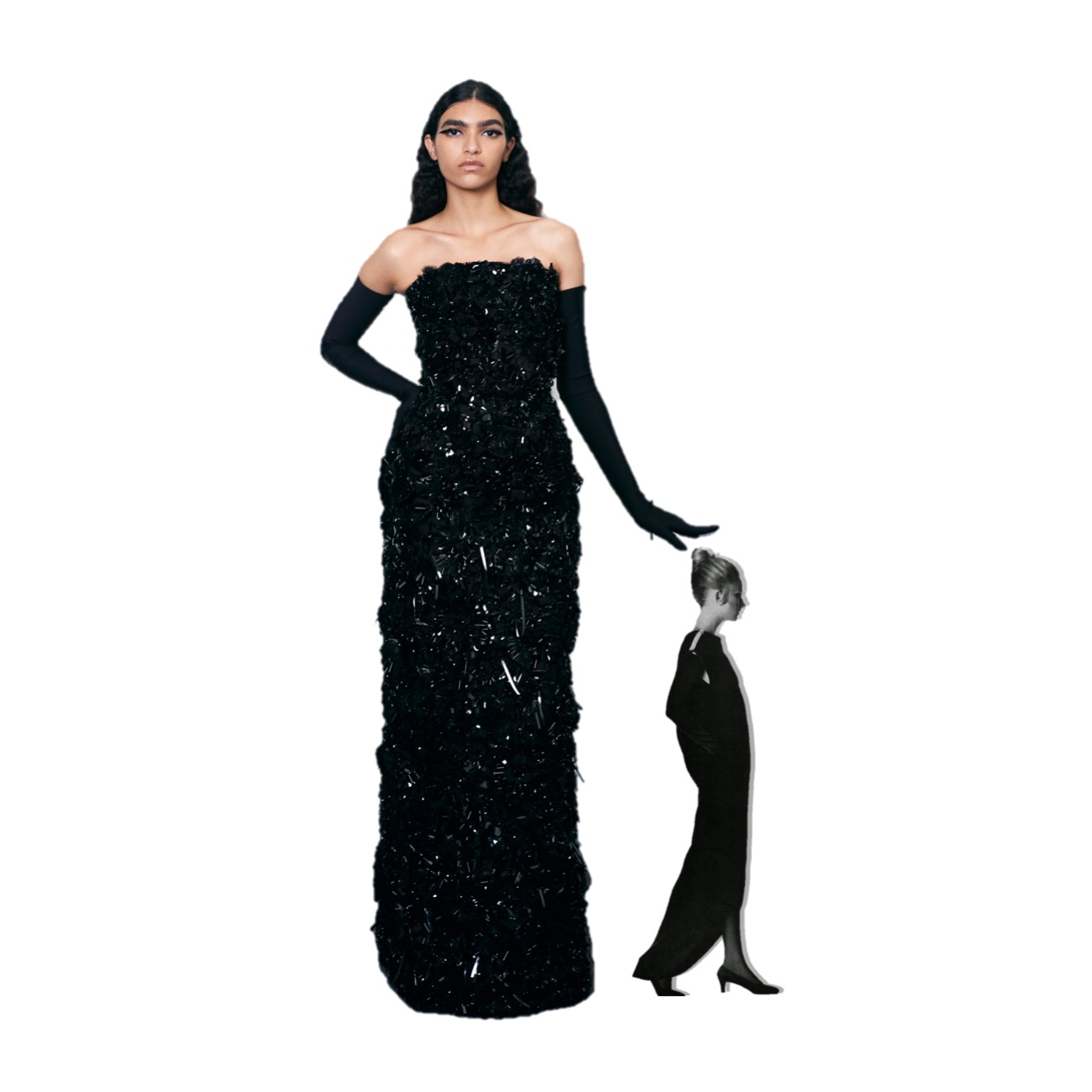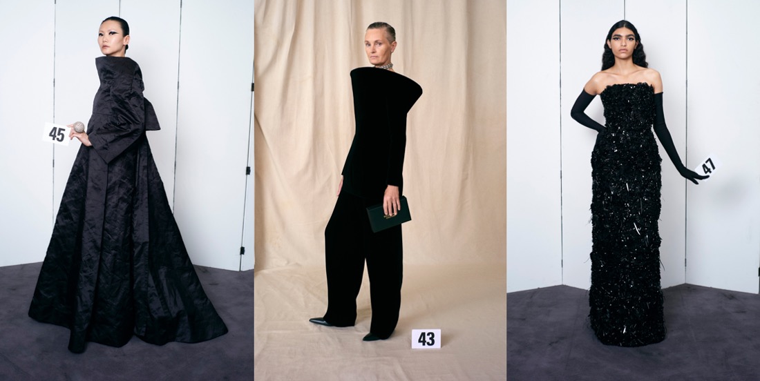 Ever since Demna‘s beginnings in fashion, honest and straightforward observation of how people dress on the street and for various occupations has always been a dynamic behind his design. The scenario playing out in his new Balenciaga resort 2024 video is very much that way, except that this time the street is the Avenue Georges V. The time-lapse slice-of-life captures people busily going in and out of the Balenciaga maison at number 10, or passing by. Whether they’re denim-clad teens, a motorcycle delivery person, a bourgeois dog walker, a skateboarder, or the retinues of black-clad hoodie-up fashion people going about their business – this is how the whole world would look if everyone dressed in Balenciaga. Underlining the fact that Demna is steering the brand narrative back to Paris, and to the house, he punningly named the collection Capital B. His second take on the collection is by way of a lookbook, apparently shot in grand rooms that variously overlook the Place Vendome and the Arc de Triomphe. Here, his perma-silhouettes are clearly in view: the oversized suiting, enveloping trapezoid coats and puffed-up trenches, the hoodies, and the bug-eyed shades with almost everything. As a pre-collection it encompasses every Balenciaga category, womenswear and menswear, formal black tailoring to denim, motorcycle leathers and sweatpants. Interspersed are also pieces from the high-luxe “Garde-Robe” collection, which are an annual release, such as the silver-fringed embroidered dress at the end. And of course the Cristobal Balenciaga-inspired ecclesiastical gowns and chasuble coats: the ultimate highlights of this very well-executed collection, which is about good dose of drama (in the clothes, not in anything around it!).