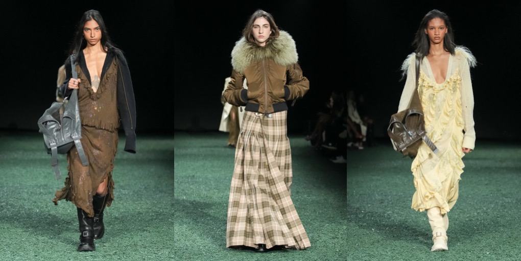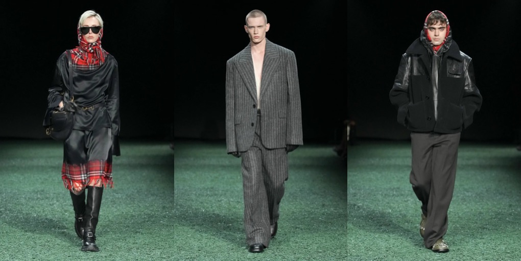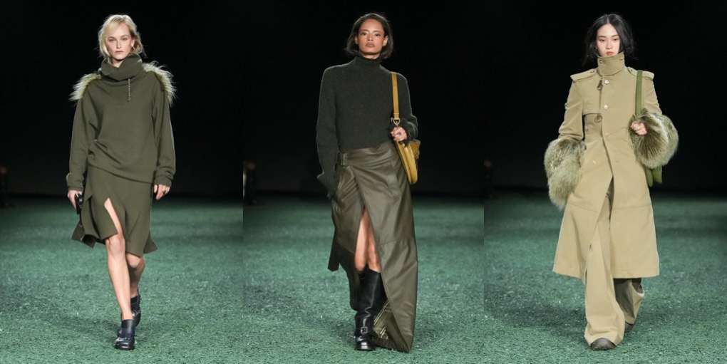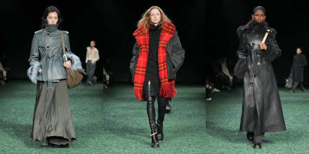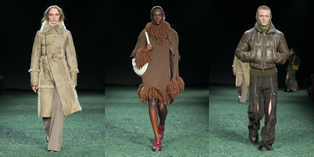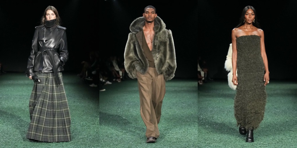 Daniel Lee is finding his ground at Burberry. Well, it’s high-time: the sales don’t look good at the British brand, and the plans of making Burberry a high-class-luxury player seem to be too ambitious. But what Lee presented under the tent in Victoria Park yesterday was quite convincing. To the tune of Amy Winehouse’s biggest hits, London’s O.G. models – Agyness Deyn, Lily Donaldson, Karen Elson, Lily Cole, Nomi Campbell – marched in desirably-looking outerwear, no-nonsense knitwear and plaid flannels. Maya Wigram – Phoebe Philo’s daughter! – closed the show. This gesture felt like a blessing from the fellow London-based designer who schooled Lee at her Céline studio. The styling of the show was persuasive as well: maxi-skirts styled with short varsity jackets, slouchy shearling coats mixed with super-oversized pants, and of course, a range of revisited moleskin trenches in shades of earthy greens and browns. Echoes of Christopher Bailey-era Burberry were heard and seen all around. All this certainly felt good to watch, but will it actually lure the clients to invest in Burberry just as they did in the early 2010s? Time will tell.