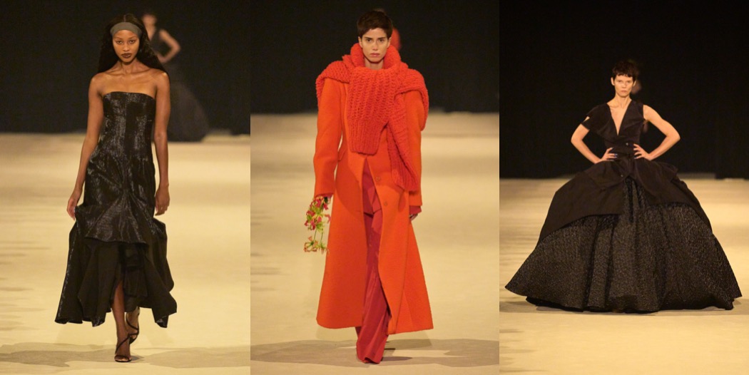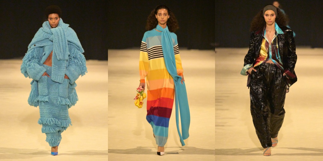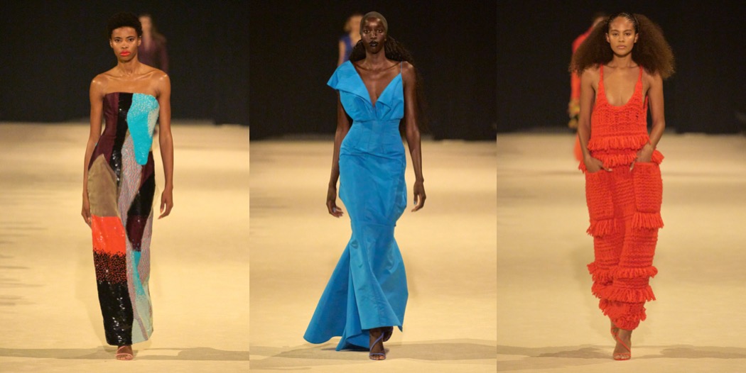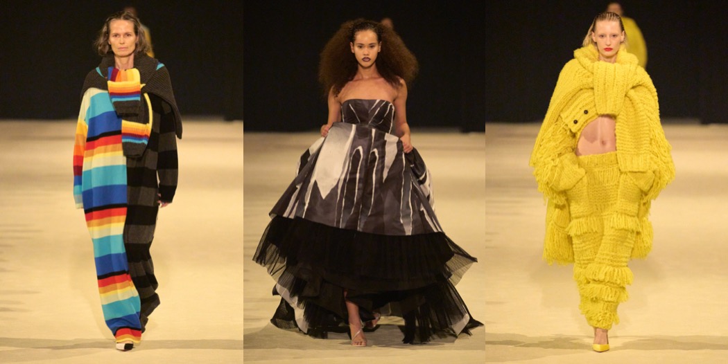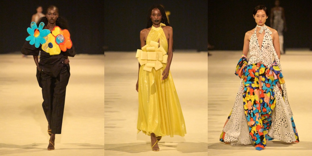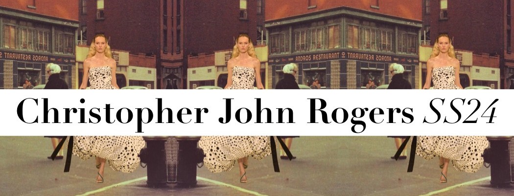 Christopher John Rogers has emerged from the pandemic at the top of New York’s young generation of designers. In his rainbow stripes and grids of colorful polka dots, he’s found strong, identifiable signatures, which is an important element of brand building that not all emerging talents understand or are capable of. The uptown, put-together polish of his clothes is another distinguishing factor. Many of his peers practice a scrappier, dirtier, more underground kind of fashion. His garments feel at ease on the red carpet. “I love being with a model and draping, or doing research, or really thinking about fit, about fabric, about texture, but I feel like only 10 to 15% of what I do is making clothes,” Rogers explained. “In some ways this collection was informed by wanting to go back to that essential feeling.” The sleeveless top and ball skirt of the first look suggested a new direction – as @londongirlinyc put it, very Carrie Bradshaw style, pre-And-Just-Like-That. To start, they were all-white, and then there was the off-kilter, undone aspect of their construction, but they were red herrings. Rogers quickly found his way back to the bright color and unbridled exuberance that are his hallmarks. The graphic stripes he’s known for were joined by similarly bold florals in the vein of Warhol’s daisies; a pair of evening dresses in black-and-white polka dots of varying sizes and overlays, both of which are definitely red carpet-bound; and going-out tops constructed like oversize birthday present bows. Rogers does a good business with knits. This season, he played with chunky yarns and thick, cozy layers, or fine gauges, though in both cases, he styled them to expose a flash of décoletté or midriff. On the opposite end of the texture spectrum were an elegant fitted button-down and matching long skirt and a pantsuit in a shiny material he likened to Glad garbage bags. “It’s this really amazing fabric that’s actually coated taffeta,” he said. To finish, there was a group of black looks, including a panniered ball skirt and a draped top with the romance of the opening outfit. Success begets success, and as Rogers’s business grows he’ll face ever more pressures and responsibilities that keep him from the design studio. The industry can be uniquely hard on promising newcomers, putting them in a box at the same time we demand they grow and evolve. But if that draped top and ball skirt can tell us anything, it’s that Rogers is as committed to the dream of creation as ever.