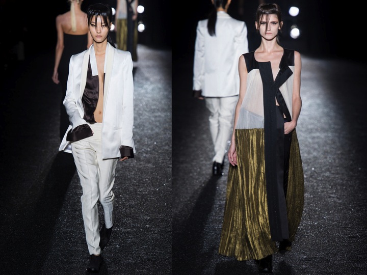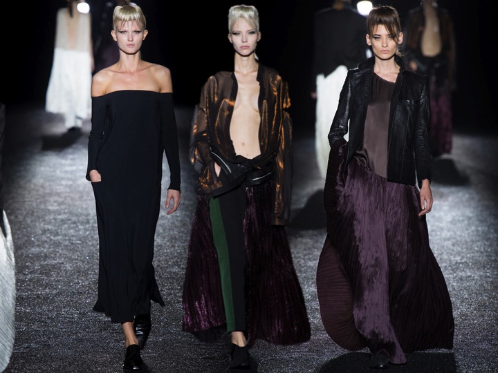 For autumn-winter 2016, the designers went for flea-market cool, which is so timeless and eternally relevant in London. One of the coats virtually looks like a re-cut and re-shaped Persian rug. A satin robe is worn as an evening dress according to the designers, with a pair of moccasins. Icy blue, velvet suit with a black, ribbed turtleneck underneath is a total-look worth investing. The intricately embroidered gown is a cherry on the cake – I’m obsessed with the way the oriental motif contrasts with the entire collection filled with feather elements, leopard spots and romantic, Fleetwood Mac flair. Oh, and the bags line is blooming, which is mostly on Katie’s part. From ‘Bunny’ clutches to collar-box bags with lilac tassels, the range is… yummy.
