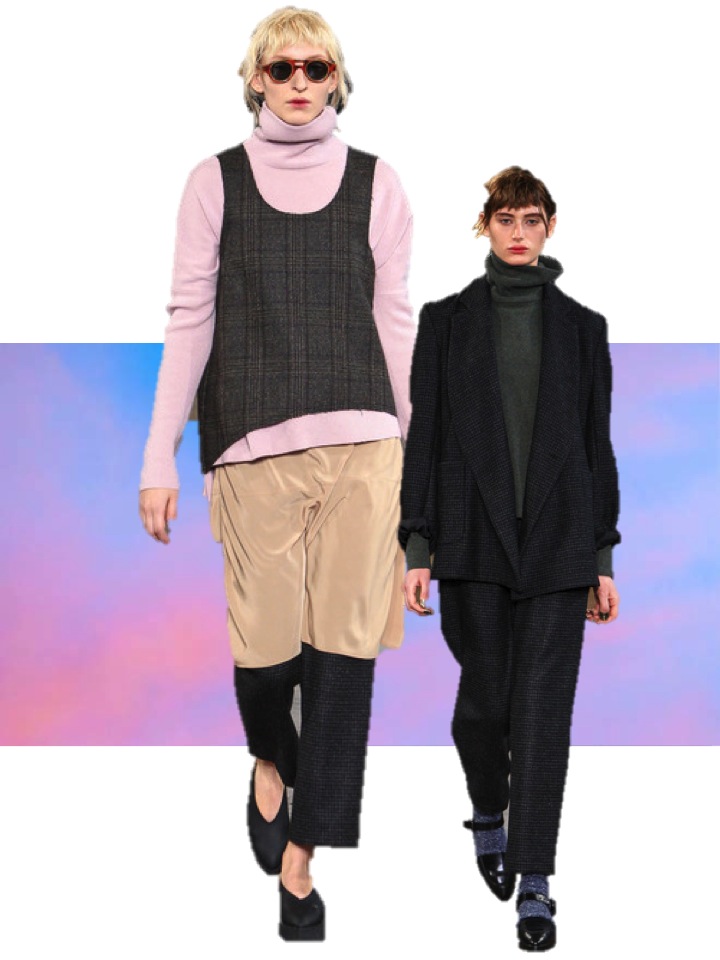 Creatures of Comfort – Jade Lai’s label is created in the aim of total comfort. The clothes are slightly over-sized, worn in a slouchy, artsy way. For winter, Jade jumped into the beloved murder mystery board game Clue. The sinister atmosphere, solemn faces of models and the concept of hidden things echoed in many layered looks. Throughout the collection which had a lot of different prints and colours used, my standouts include the swingy coat in powder blue and the bottle green dress-cardigan combo (which slightly reminded me of Mrs. Marple, the character of Agatha Cristie).
