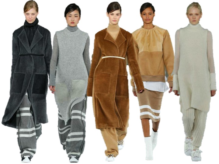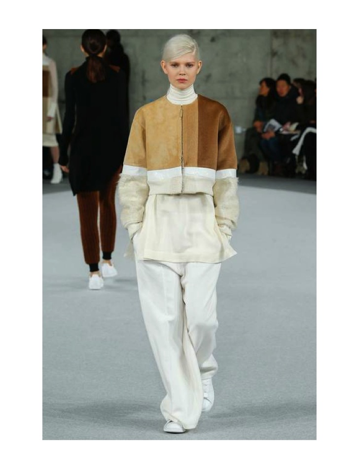 Edun – the designer of Edun, Danielle Sherman, has a strong collection behind her back. For AW14, she did a typical, normcore collection which is filled with cozy sweaters and sweatpants. This is Sherman’s second collection at this Bono-founded clothing line. Before she worked at T by Alexander Wang and The Row. And she already redirected the house codes! For Fall, Sherman focused on materials and texture-blocking, giving sporty silhouettes a fuzzy, earthy quality. “There was a lot of fabric manipulation,” she said of the way the wool and alpaca was often brushed upward to create a “hairy” effect. “Even though it’s Fall, I wanted to keep it light.” Sherman showed a ton of over-sized trousers in camel and grey (they look good with Stan Smiths) and knits which are must-haves this season. The teddy bear fun continues.