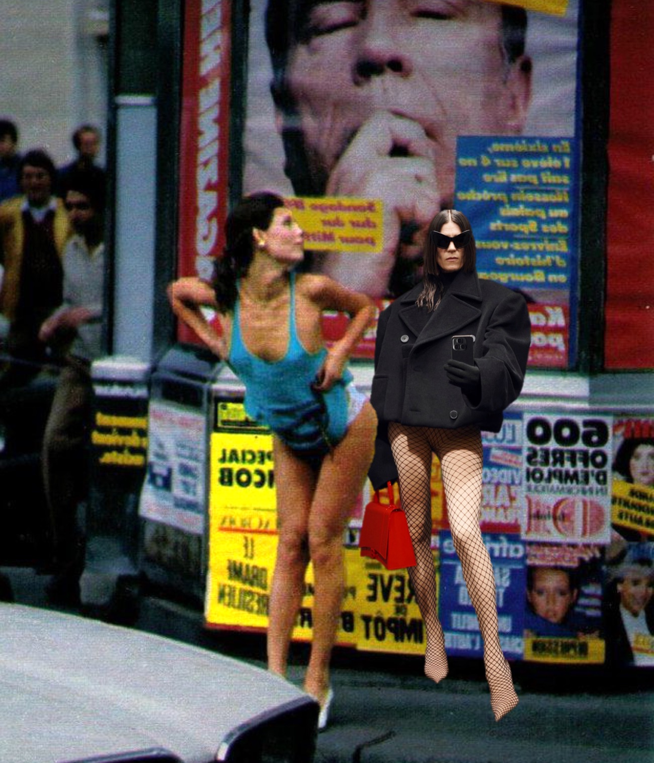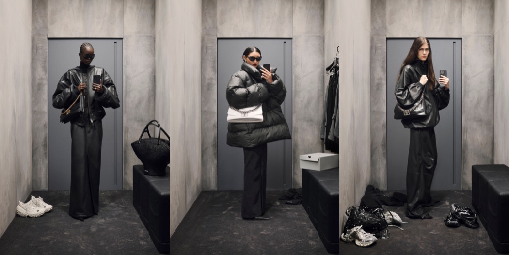 As for the clothes, it’s all about the quintessence of Demna’s trademark style: humungous tailoring, oversize hoodies and jeans, sinister leather coats and military camouflage were represented. So were plissé evening gowns, floral prints, bathrobes, motorcycle leathers. Vintage trenches and bombers were cobbled together with four sleeves apiece. Multiple evening gowns were made from multiple old evening gowns—black velvet, fuchsia satin, glittery gold. Demna’s jokey accessories were everywhere: Balenciaga sneakers grown even more absurdly vast than ever; supermarket grocery totes reproduced in leather; marabou-trimmed men’s kitten-heeled boudoir slippers, and hand-carried shoes converted into clutch bags. With all his favourite people on the runway – starting from Cathy Horyn and Renata Litvinova and ending on Elizabeth Douglas and Amanda Lepore – it seemed that Demna was truly proud of the collection. “What I showed today was probably my most personal and my most favorite collection, because it was about me; it was about my story.”