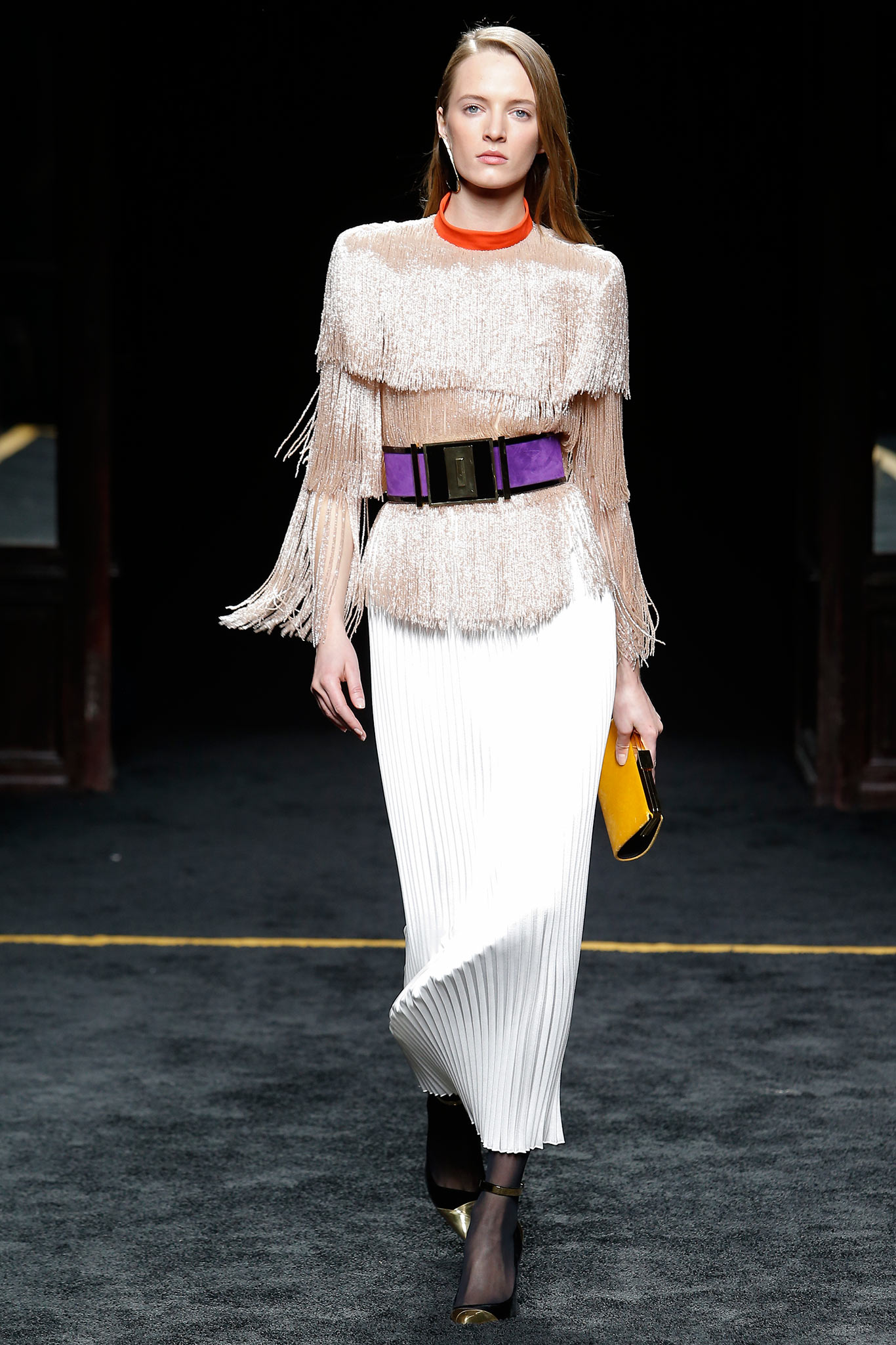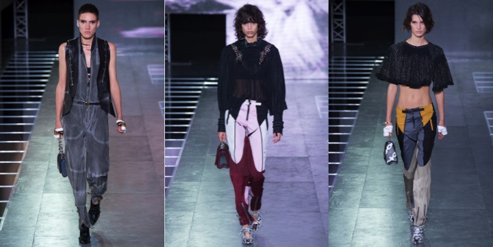 Spring-summer 2016 season at Louis Vuitton is his best to date. Nicolas Ghesquiere really did show his refreshing stance at the maison – cyber luxury is the best term that reflects the mix of exclusive logo prints and pink-haired model wearing highly hype (whatever this means nowadays) clothes. Nicolas definitely had Japan on his mind this time – the Harajuku girls with manga-inpired robot tiaras and platform sandals make this collection sharp, but with a slight bit of kawaii flavour coming straightly from Tokyo. However, the collection had something more ethnical, too – note the lovely hand-stitched embroideries on suede biker jackets below. Or the feather details on mesh tank-tops and badass gloves. This how you do ethno, Valentino – keep it discreet, but appropriate. But what really hit me this time, is the amazing talent of fusing fashion history that the designer is known for – the Victorian blouses with leather vests and medieval inspired gowns have never, ever looked so modern as in Nicolas’ vision. These shirts, dresses, motorcycle leggings and, yes, jumpsuits (!) are highly in need. Also, I am drooling over these leather, pleated totes – the beauty of these accessories makes them conceptual objects, rather than just “bags”.