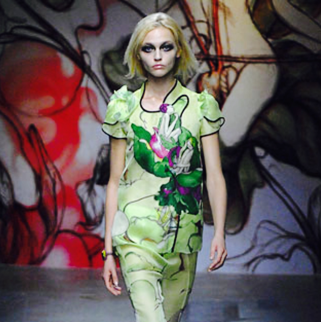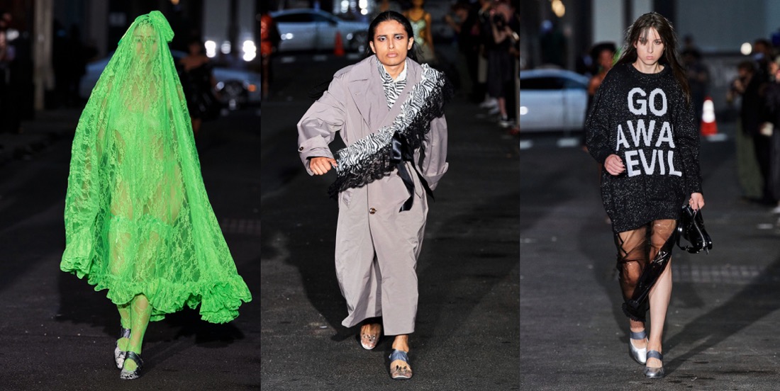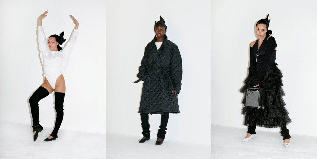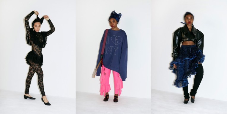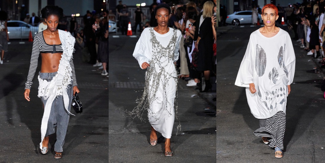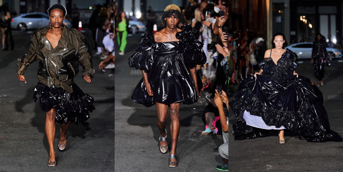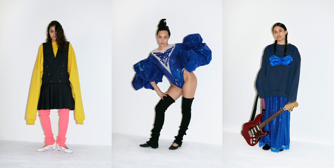 Vaquera is growing up, but it keeps on being true to its core identity of one of New York’s most daring and intriguing brands. Where the label had once used real trash bags and duct tape as textile stand-ins, it is now using specially developed fabrics. And spring-summer 2022 saw the first Vaquera handbags – shaped like classical instrument cases including shrunken carriers for a violin, snare drum and flute. “It’s changed everything, as we headed into the pandemic we probably wouldn’t have been able to keep this business open without them. We owe everything to them – it’s been an incredible partnership,” Bryn Taubensee said of Dover Street Market Paris’ September 2020 pledge to help the brand’s development. “I think this brand started with a DIY spirit and now we have this structure with Comme and have come so far with sales,” Patric DiCaprio added. The designers, which recently saw their third counterpart Claire Sullivan depart to work on personal projects, said their overall mood was swayed by notions of “luck and superstition and trying to take control of a situation that’s out of control – the rituals you can do to make yourself feel powerful”. Between the lace tights, leggings with a heart cutout perfectly aligned over the buttocks and ballooning gowns tiered in the formation of a New York City sidewalk trash heap, Vaquera delivers its underground quintessence in a less amateur manner.