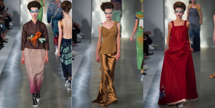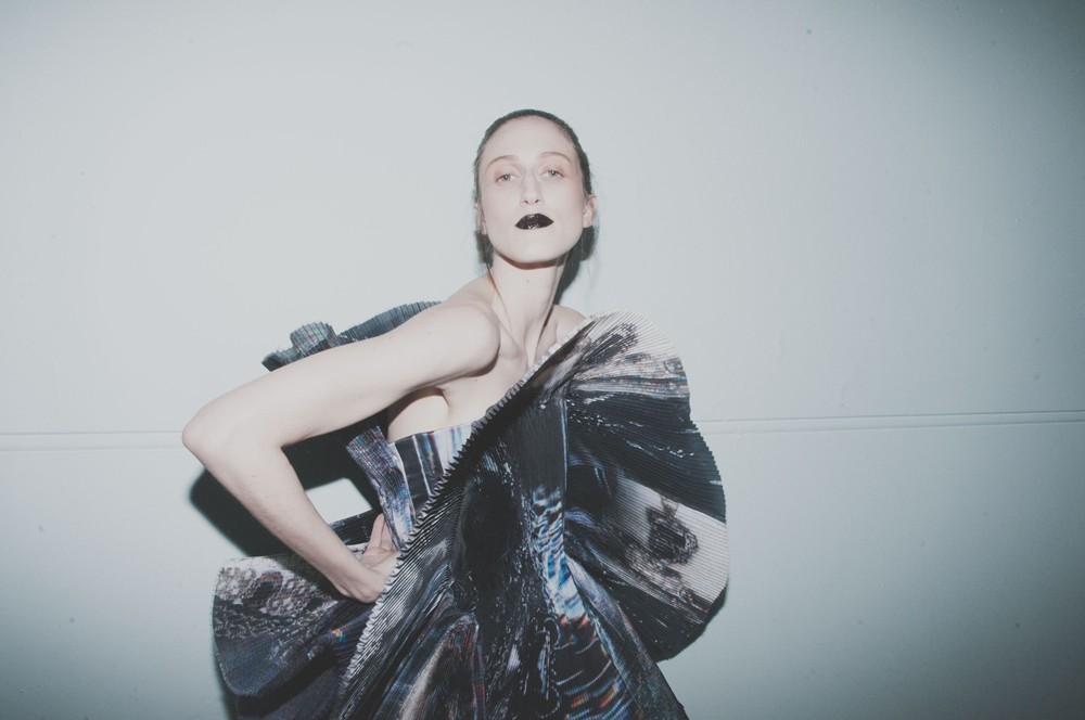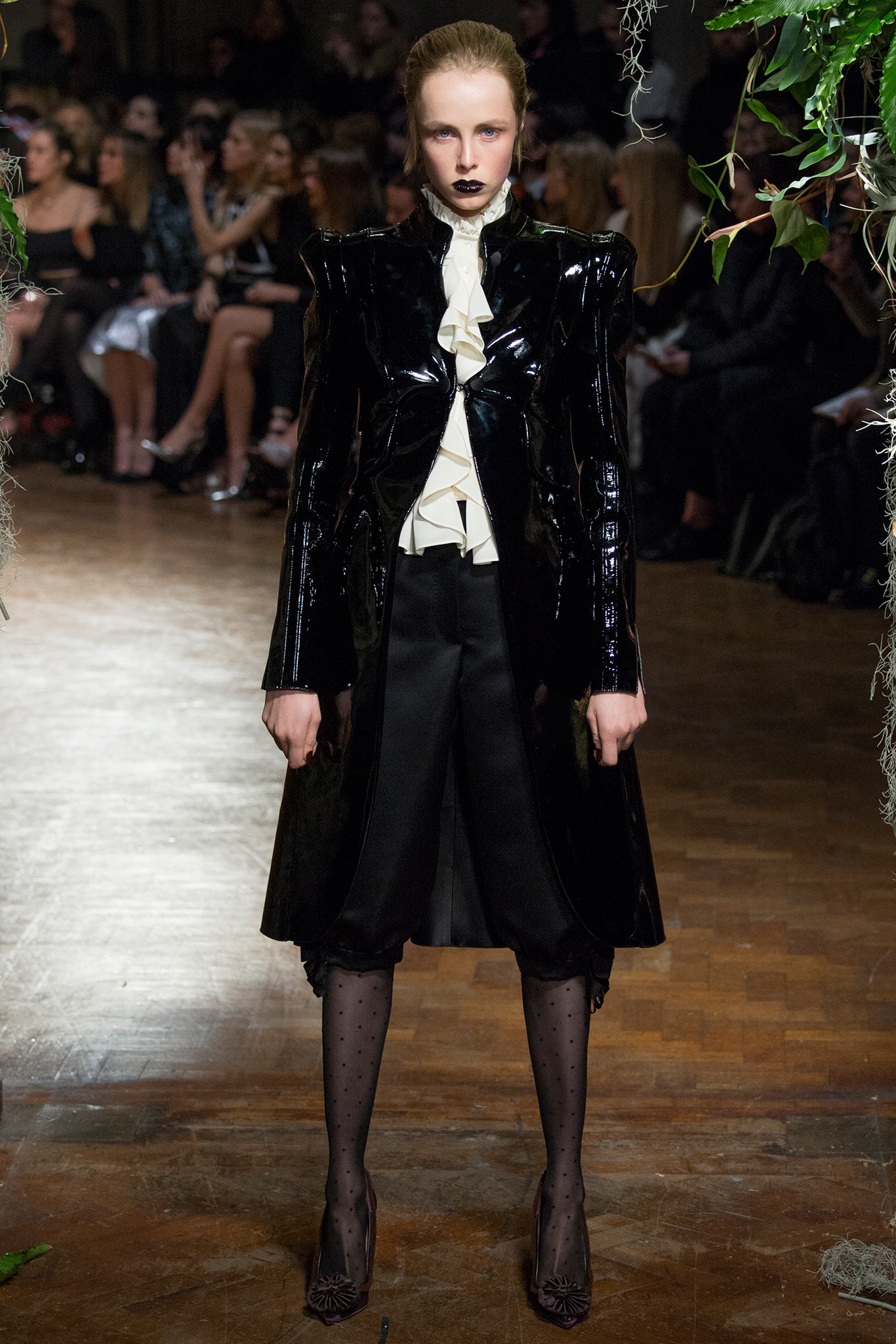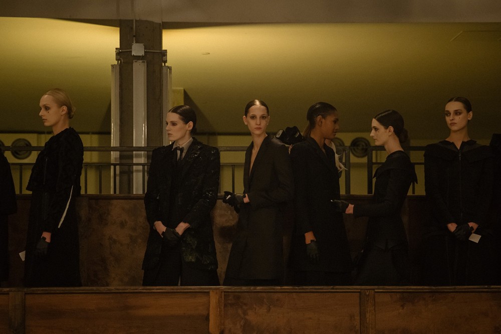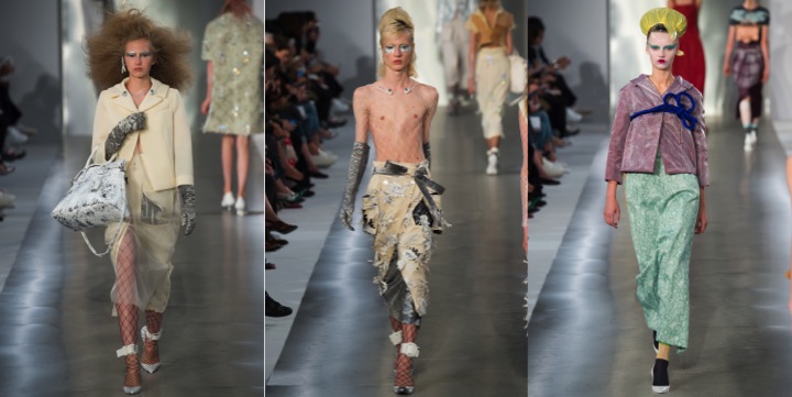 After few collections presented by John Galliano for Maison Margiela, I have a clear opinion on him – he is not the same Galliano we knew at Dior. The spirit of that Galliano seems to be tamed by the idea of conceptualism that is constantly imposed by Margiela’s codes. It’s visible he tries hard to make Maison Margiela an enigmatic and elusive brand – but his other side of a show-man just doesn’t let it go. Drama queen dresses, transparent baggy dresses, bee-hive hairstyles… even the artisanal textiles he uses don’t look high-end, but rather like from one of London’s fashion student graduation collection. Also, the whole idea of gender-fusing seems to be not that fresh as Galliano and Margiela’s studio thought when the did the show’s casting. Men wearing fish-net tops and high-waisted skirts? So Eckhaus Latta. And, of course, the most ridiculous thing about the entire collection – the bags tied with obi knots to the model’s back. When you don’t have any other idea how to make a show amusing, you do this type of thing. And call it pret-a-couture or something alike.