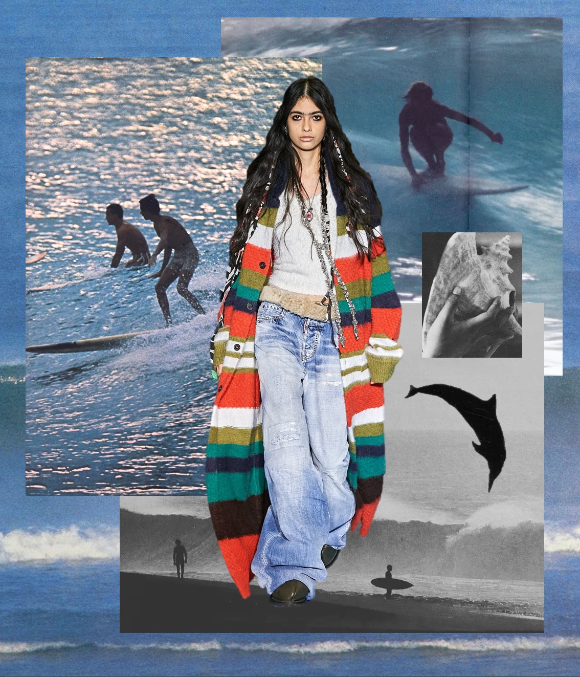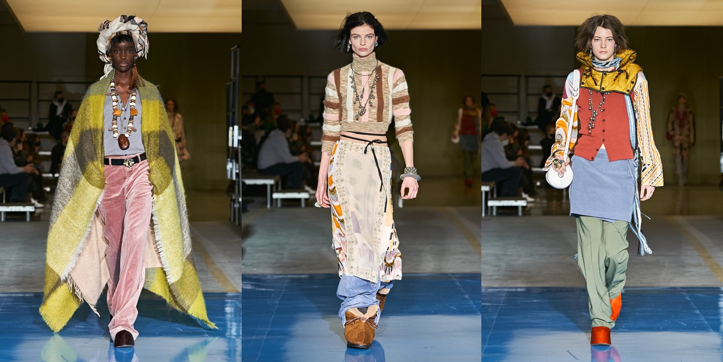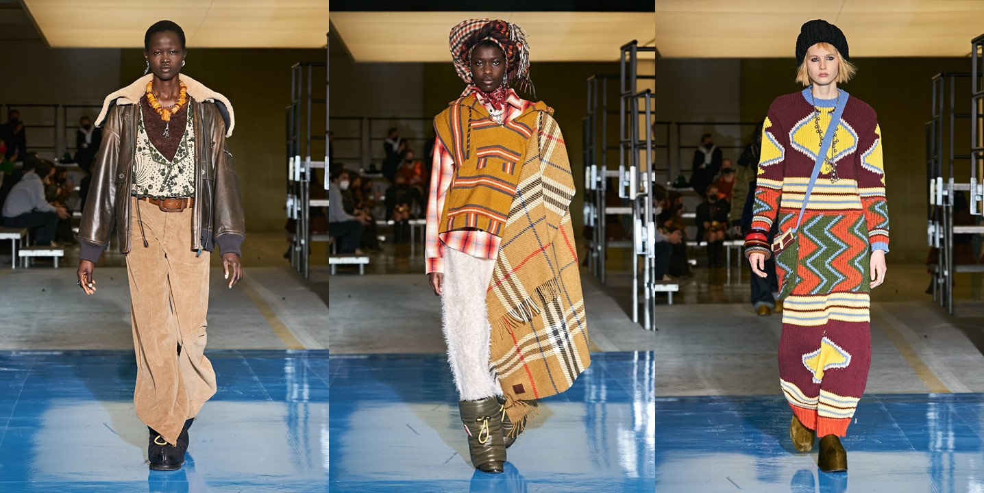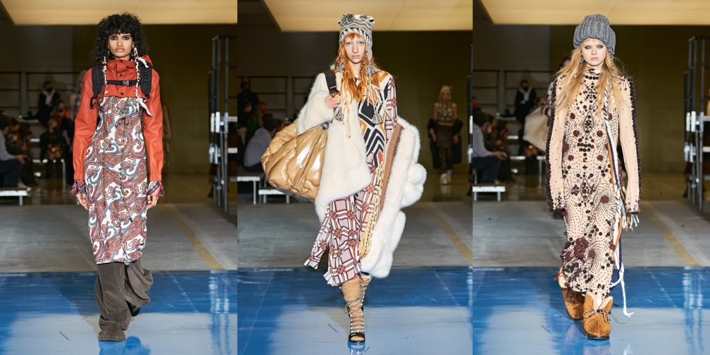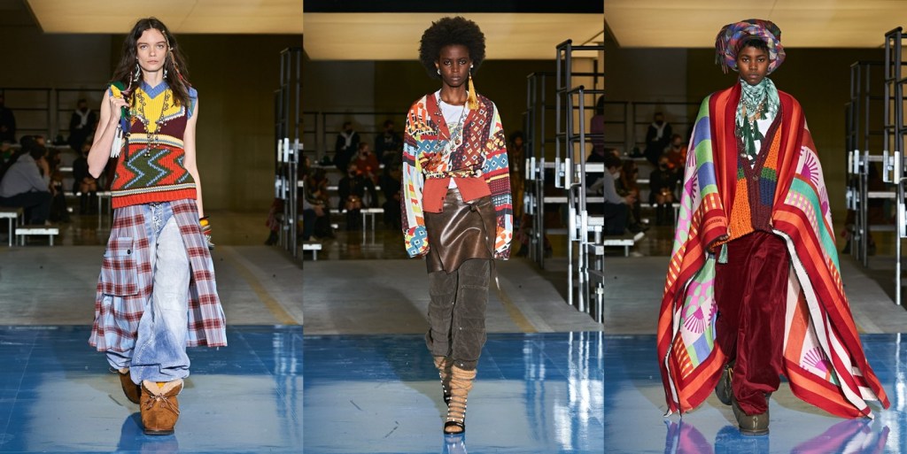 No one does a show in Milan like Dean and Dan Caten. Their autumn-winter 2024 DsQuared2 show was about the idea of twins. Who better than the Canadian brothers should have a say in the representation of “the two sides of the coin,” as they said backstage? Drawing upon their own reality of being a sort of day-and-night double version of each other offered the Catens the occasion for an entertaining show – fun, uplifting, with the right amount of camp and lots of maximalist mashed-up styling. The cast was obviously made of sets of twins, one of which was dressed in Dsquared2’s typical grungy daywear; upon entering a “makeover machine,” the other twin emerged glammed up in the evening version of what the first was wearing. The set, a shiny white box, served as glossy backdrop for the finale coup-de-théâtre, with the Catens taking their bow – Dan looking macho in fitted black jeans and an alluring see-through glittery chiffon shirt, and Dean playing the diva in a flame-red hairdo and black corset dress slashed at the front revealing a great pair of legs, teetering with consummate confidence on ultra-high stilettos. They brought the house down. As for the clothes in the co-ed show, there was great outerwear of the outdoorsy, furry, and fringed variety; fabulous distressed and patched denim; fair isle knits, cargos, destroyed tees, trapper hats, and sequined chaps, all jumbled together and styled with slinky abandon. For evening, black dominated, with body-skimming and plunging necklines for the girls, and sultry slim tuxes with femme undertones for the boys. Haley Wollens’ styling makes DsQuared2 look hotter than ever. Fashion for the Catens is going in just one direction: sexy, sassy, with humor to spare, and entirely guilt-free.