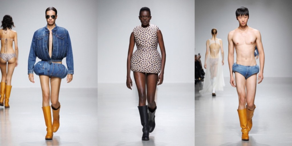 On one hand, I think it was a wise choice for Duran not to revive Jean Paul’s archives too literally. On the other, this collection revealed that his own repertoire still feels somewhat limited. It could just as easily have been a Duran Lantink show – and honestly, it might have made more sense that way. The razor-sharp cut-outs, the “Lumps and Bumps”-inspired silhouette manipulations, the op-art stripes, the bodysuits printed with a haired male corpse – it’s all Duran through and through, like it or not. But we’ve already seen most of these ideas play out, in slightly different variations, within his own brand. READ MY FULL REVIEW HERE.