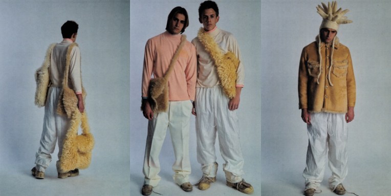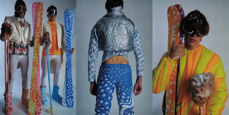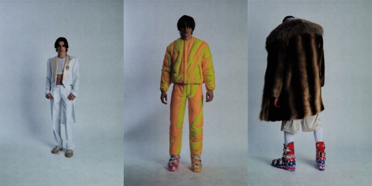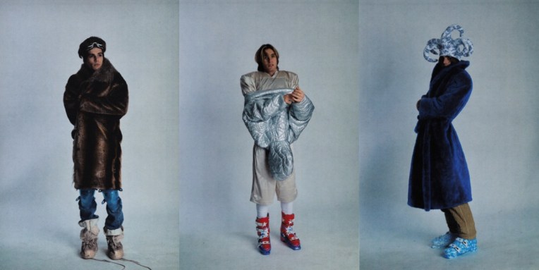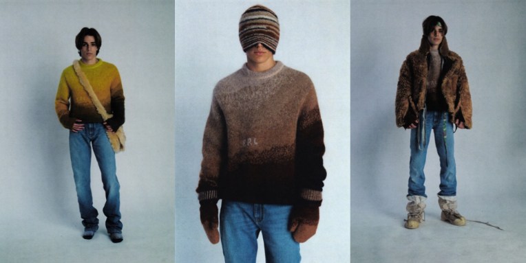 ERL‘s collection look-books always have that unique, beautifully disturbing, theatrical quality. Browsing through the autumn-winter 2022 line-up, one might have an impression of watching a coming of age school play – which went full art-house. Eli Russell Linnetz’s propensity to confound and inspire is what makes him an engaging designer to watch. He crafts entire worlds for even the simplest garments and images, attaching stories to even mundane items. The forthright, yet whimsical clothing he makes goes against mainstream understandings of jeans, tees, puffers, and prim plaid dresses. Basic garments are often stripped of their magic, divorced from beauty, and reduced to mere stuff. In championing “normal clothes,” Linnetz continues the great American design tradition of Calvin, Ralph, and Dapper Dan – making the ordinary extraordinary. Linnetz signatures, like worn-in denim, printed tees, and pastoral skirts were all here, alongside new pieces like a camouflage patchwork puffer, knits in ombré patterns, crisp little cardigans, and star jacquard denim in tonal blue and the colors of the American flag. A collaboration with Salomon’s snowboarding imprint brought kooky color-ways to the collection. Plaid flannel shirts were styled to evoke Victorian bustles, shirts were strewn with pins that riff on Vietnam War protest paraphernalia, and the quilt Linnetz upcycled for ASAP Rocky at the 2021 Met Gala was reinterpreted as bulky, blocky puffer jackets. All together the collection contained many wantable, wearable things, each representing a thread of ERL’s story.