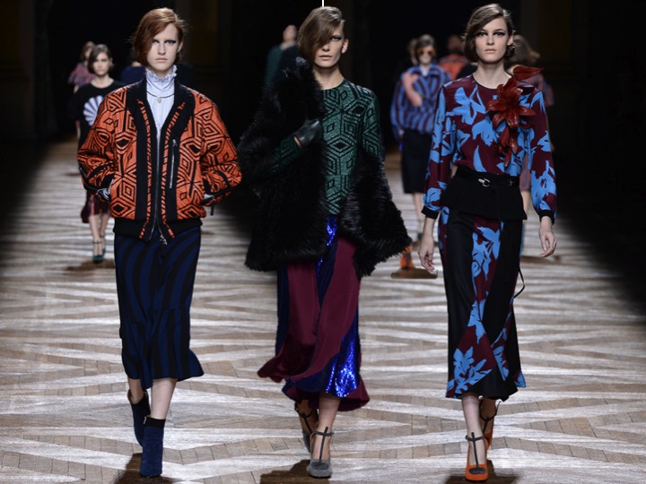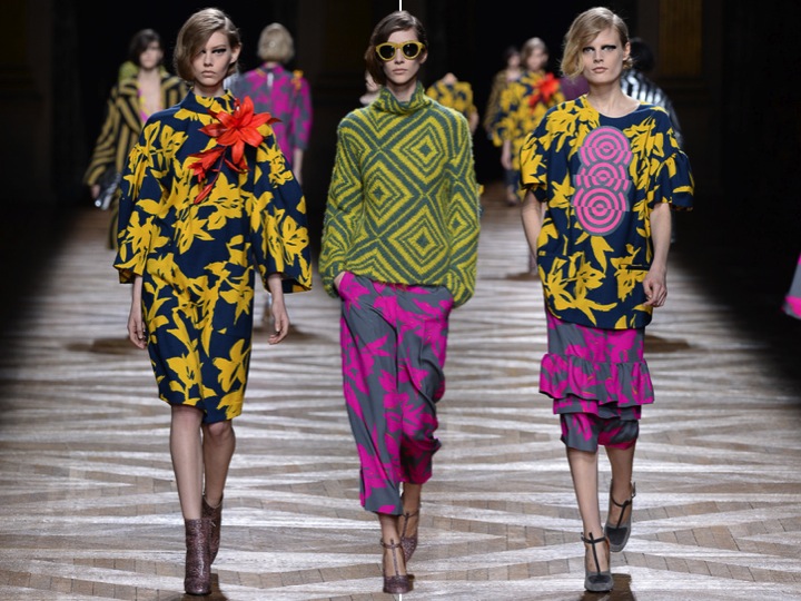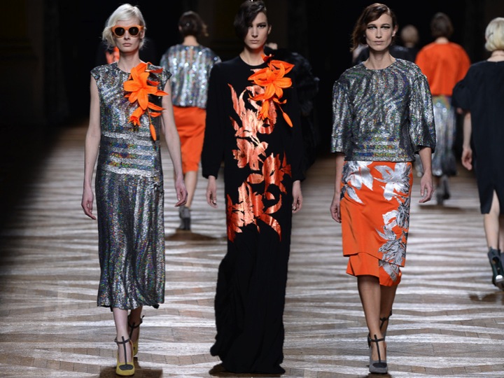 That was so… unexpected! Dries Van Noten showed the most bright, radiant and vibrant collection to date in his career! The AW14 was all about orange, orchid, flowerd, Hawaii, sequins, stripes… It was loud, it was fun. And those over-sized silhouttes. They are so Le Marais. There was also a interesting illusionist touch- geometrical coats in silver & black are a must-have. But- one question comes up- is still winter? Ok, furs. However, furs are on every summer collection of Prada. And it’s pretty hard to imagine all these island resort elements in winter… Who cares. It’s cool and surely will be a hit when hits the stores.