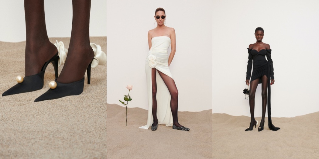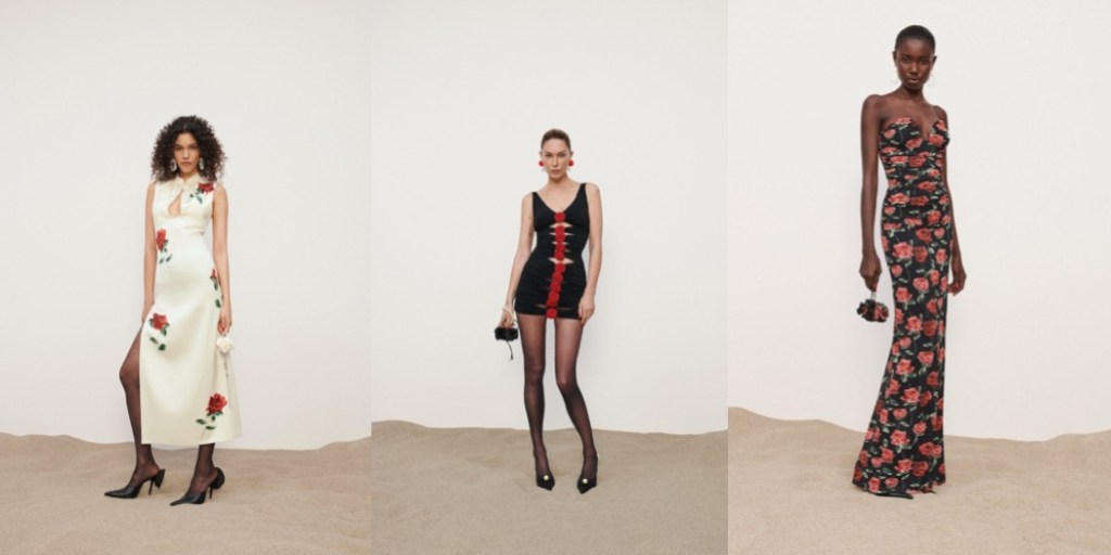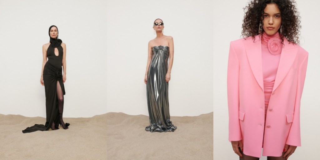 Magda Butrym‘s pre-fall 2023 collection launched at the time Kali Uchis released her new, soothing single, I Wish You Roses. “I was a rose in the garden of weeds, my petals are soft and silky as my sheets, so do not be afraid to get pricked by the thorns“. Sometimes, a feeling is captured simultaneously by both, music and fashion. The Polish designer, who dresses Hollywood’s leading women, from Natalie Portman to Margot Robbie, knows how to serve a collection that’s feminine, romantic, yet absolutely badass and empowering. The pre-fall offering sees model Erin Wasson wearing the most sexy red dress of the season, literally blooming with hand-draped roses. There’s a column-dress moment in silver lamé; a summer-perfect sun-dress made entirely from crotchet; a hooded black gown giving total red carpet glam. The floral print, so signature for the brand, goes through a Kar Wai Wong’s In The Mood For Love lens this season. The eveningwear is hot, and Butrym keeps on evolving other parts of the wardrobe as well. The red blazer with broad, 1980s shoulders is as convincing and bold as the boxy leather coat. The best-selling heels with pinned flowers now come with the chicest pearls attached. “I wish you roses, yeah, roses, roses…“
