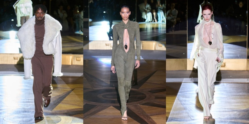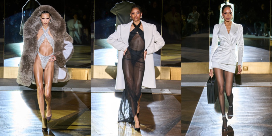 New York loves sexy fashion, and since Tom Ford is on and off the NYFW schedule, there’s a great need for sensual, stinking hot, evening glamour. LaQuan Smith does that so, so well. “This collection has a little bit more of an elevated sophistication,” the designer said. “The LaQuan Smith woman is growing, and she’s incorporating these sexy elements she finds here in all aspects of her life,” he added. Smith is growing, too. His cut has become more precise and intentional, as has his choice of materials. The star of the show was the tailoring. Smith said he didn’t want to take the suiting so seriously, “as we’ve seen classics from all the greats.” This was evidenced by the cleverness of the tuxedo-meets-little black dress of the first exit and the playful sharpness of the cropped jackets. Smith is known for dresses, but here he cut a solid range of trousers: some low-rise, others with hand-folded silk waistbands, but all razor-sharp and with the right fit – not too wide, not too slim, and just long enough to wear with a good pair of stilettos. As expected here, there were moments of sheerness, including mesh tops with scooped satin necklines and another with applied strips. Rounding out the lineup were bodysuits, evening dresses, and separates in stretch suede (the vertiginously low slung skirts include built-in panties, a considerate detail), a skirt and bra set in a crinkled metallic leather, and two LBDs in a patent black material. Smith also included menswear in this lineup, inspired by his recent creation of a custom ensemble for Lenny Kravitz’s CFDA Awards appearance. The looks were worthy companions to his womenswear, and the Kravitz influence was evident, particularly in the coat and monogrammed leather trousers worn by Alton Mason.