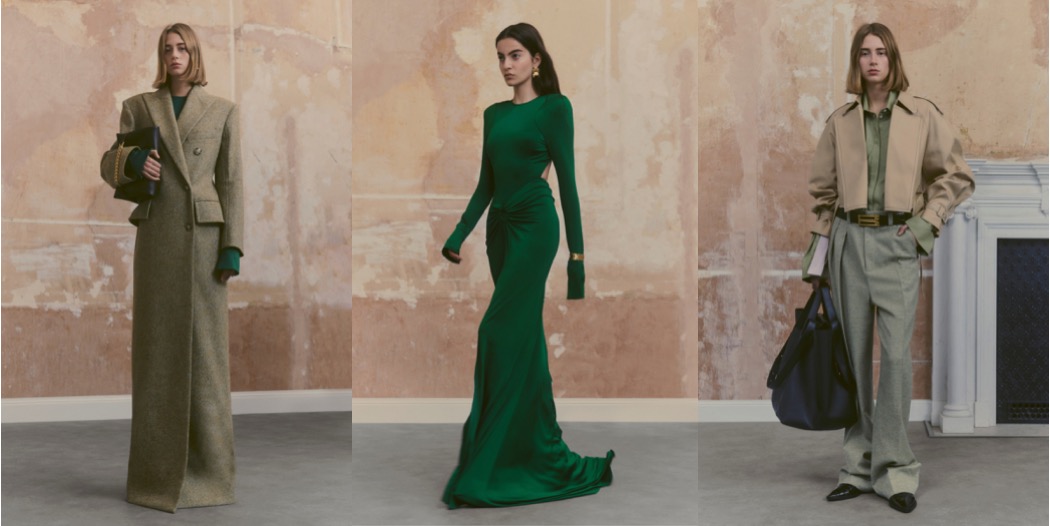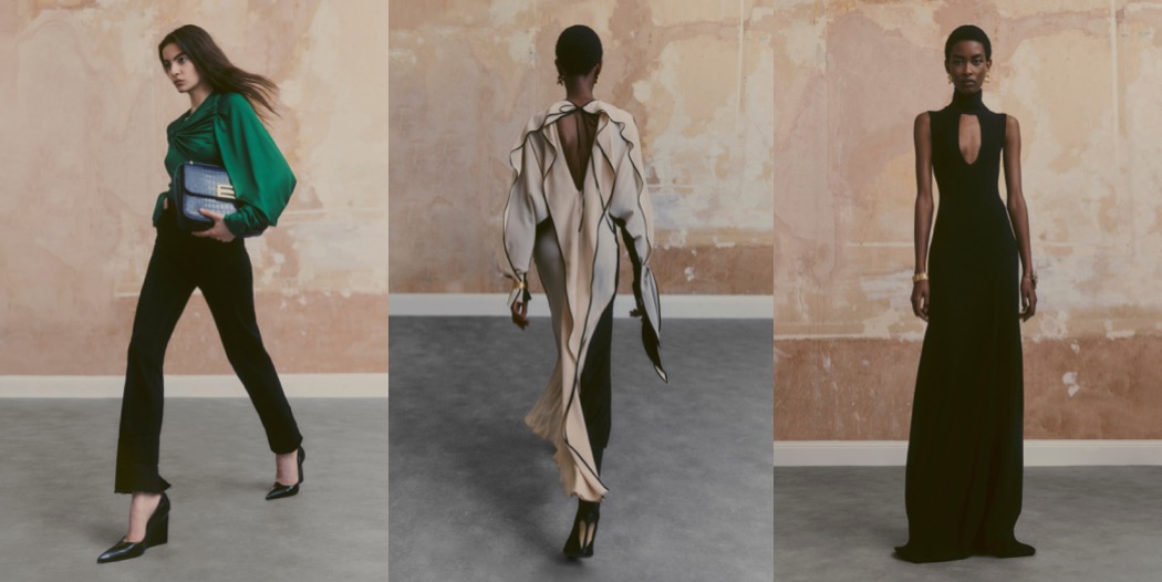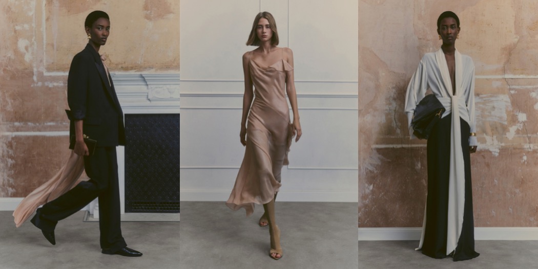 Victoria Beckham – and her design team – seem to enjoy a newly found freedom in their creative process. The brand’s aesthetic can’t be as easily categorized as in the past: Beckham’s fashion is no longer about minimalism, that’s for sure. Rather, it’s about contemporary femininity that needs no labels. As she puts it: “There really is a strong reality in the garments. Everything looks really quite simple, but it’s all about the consideration, the execution, and the subtle details.” Somewhere along the line, her collections have assumed a non-uptight flow that strikes a good balance between usefulness and sophistication. Her confident assemblages of tailoring and mostly ankle-grazing fluid dresses have been garnering critical approval since she started showing in Paris a couple of seasons back. Still, it always takes a little while for a look to sink in, and then it’s another thing to follow up with tangible product that follows through on a good runway impression. Her spring pre-collection makes it clear that she’s got that covered as well. Asymmetry plays another role in her dressmaking. It’s not always easy to understand dresses that fly off madly in all sorts of directions, but here Beckham is using the possibilities of bias cutting, ruching, and collaging to great effect. Some of her eveningwear has the air of 1930s dance dresses, minus the vintage-y feel. There are day dresses that are somehow patchworked from pattern pieces that run in diagonals and seem to spiral around the body. You notice the dynamic lines because of the white piping edging each component. All that plays into hanger appeal, provoking the kind of curiosity liable to make a woman want to try something on rather than pass (as we do so often) because it looks too difficult. “I think it’s just about finding a point of difference,” Beckham observed. That doesn’t sound like much, but in a world overloaded with competing product from high street to haute level, such considerations count for a lot.