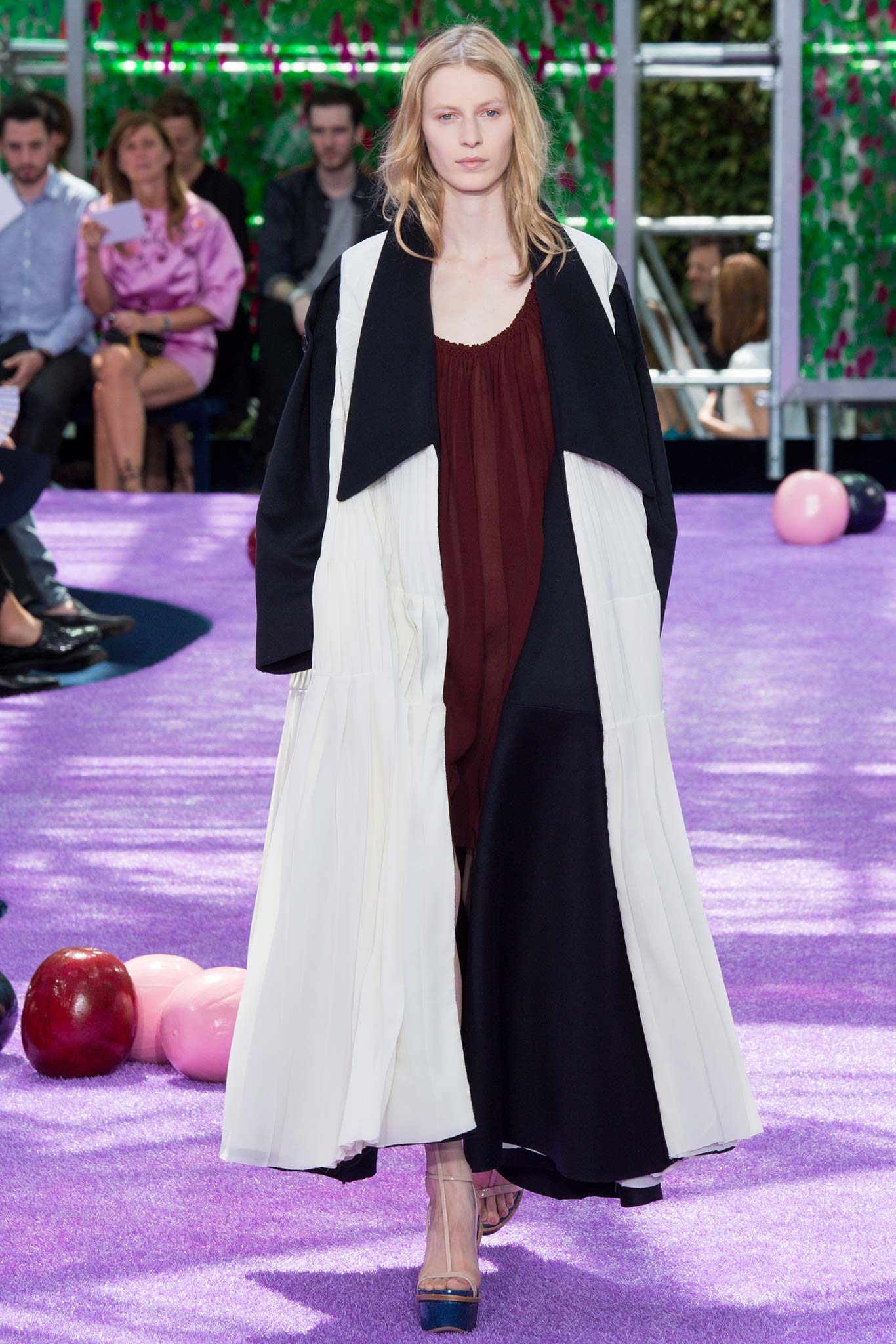 The textures. Raf Simons is not only obsessed with today and the past at his namesake brand, but also at Dior. That is why his AW15 couture collection was a fusion of old and new. This is strongly visible in his outerwear – Simons’ dose of his own Belgian heritage into Dior’s referred back to “the Flemish masters and the sculptural drape, the velvety weight that men like Vermeer were able to communicate in paint, their models serenely poised with arms folded” as Tim Blanks translates. A coat/cape hybrid was the result of neoprene, couture embroidery and a fur stole which is all about mixing old with new.