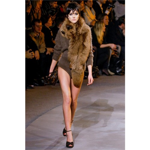 “The hurricane which destroyed his house allowed Marc Jacobs to find a new source of inspiration. He symbolizes through his collection the renaissance. Under a light at first dark, almost apocalyptic, the Marc Jacobs woman who seems to be a survivor, wanders, wearing only a pajamas, a coat or a panties and clutching her personal effects. Then comes the time of resurrection, the light becomes more intense, hotter, the silhouette is more complete, glitter, lamé, fur are mixed on evening dresses, coats and boleros. The materials are divine and ostentatious but the style is uncluttered, only few pieces but all comfortable. Boa made from luxurious real mink fur, reworked to achieve the look of an actual pelt, with button eye detailing.” This fox boa that first time came out on Marc Jacobs runway, shocked everyone. No wonder why- it looked real good from far, and everybody found sweet and cute. But when I found this on Colette today, all my view destroyed on that item. This looks like if MJ stole this muppet from a child! No way, don’t buy it. Disapointed!