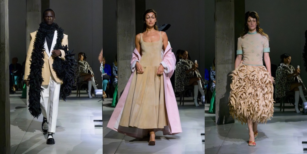 It’s Francesco Risso‘s ninth year at Marni. His work at the brand took different turns, from being avant-garde-sketchy to raw and crude (like last season). Spring-summer 2025 was a pursuit after beauty. “Beauty is a white rabbit,” said Risso backstage. “You chase it, though you fall short in capturing it.” But he actually took grasp of it, especially in closing part of the collection, inspired with bygone era of fashion shows and 1950s haute couture, through a lens of “Funny Face“. Slender silhouettes in soft hues, small hourglass dresses shaped by vertical pleats, tight siren skirts with stiff ruched hems – this is Marni that will certainly attract the clients to the stores. But this wouldn’t be Risso’s Marni if it was all pretty and prim. The collection was made of humble cotton, being a “thread that mends relationships and wounds, guiding us back to the right path after we’ve strayed and leading us toward what I call the essential beauty routine“. The seemingly rough, canvas texture of broad-shouldered jackets, pleated trousers and cut-out skirts gave the collection a sense of “work in progress“. In Risso’s world, beauty isn’t a constant. It’s something you look out for with patience and perseverance.