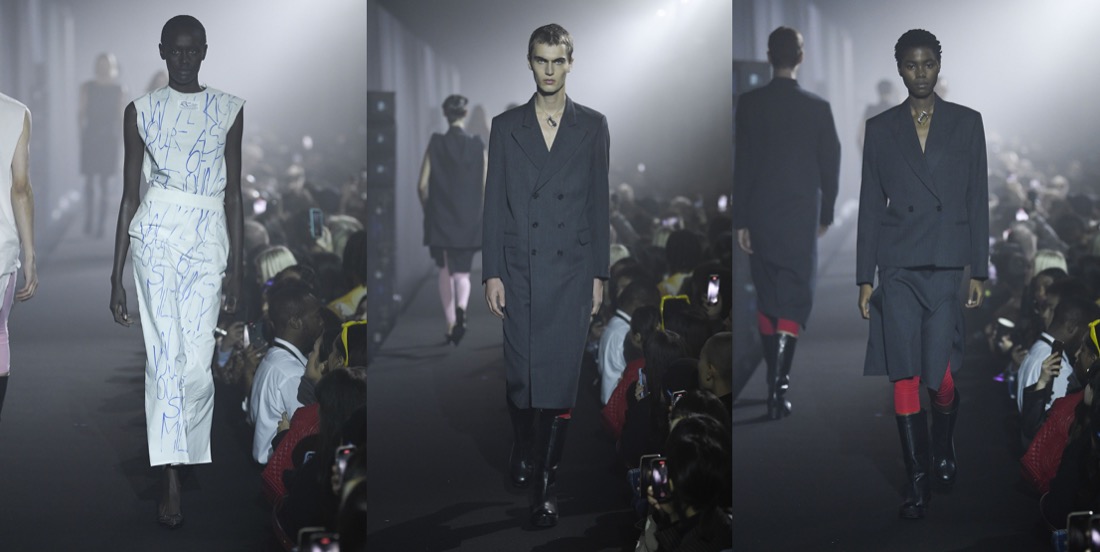 Raf Simons presented his spring-summer 2023 collection in London, during a sort of mini-fashion-week (this week we’ve seen shows by Alexander McQueen, Roksanda and a couple of other British brands) that accompanies the Frieze art fair. The designer planned to show during the regular LFW, but the news of Queen Elizabeth’s death made him postpone the show. While other designers in London presented collections during the mourning period, most of them kept a respectful temperance – minutes of silence, quiet soundtracks. Simons’ rave-like outing just wouldn’t feel right at that moment. And in result, the collection gained a lot from being off the hectic fashion schedule. It really felt like the “moment”. A thousand young people, students, artists, designers, musicians, DJs, and fashion types, all pressed together in the chaotic spirit of euphoric togetherness, watched the show happening on a runway that minutes before was a bar. “I decided to come to London last year, because I felt the energy was incredible,” Simons declared. Post-Covid, post-Brexit, he observed, “you feel London, and the country is a hurt animal, but it’s an animal that’s ready to go out. There’s something positive within the negative. I saw it again, this week, going to galleries. Somehow people mix up here, start conversations. Coming to the city, the streets, the community is always inspiring.”