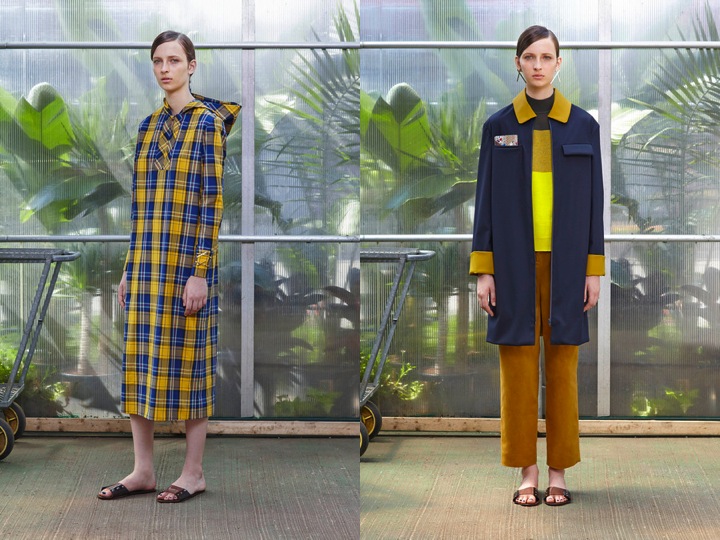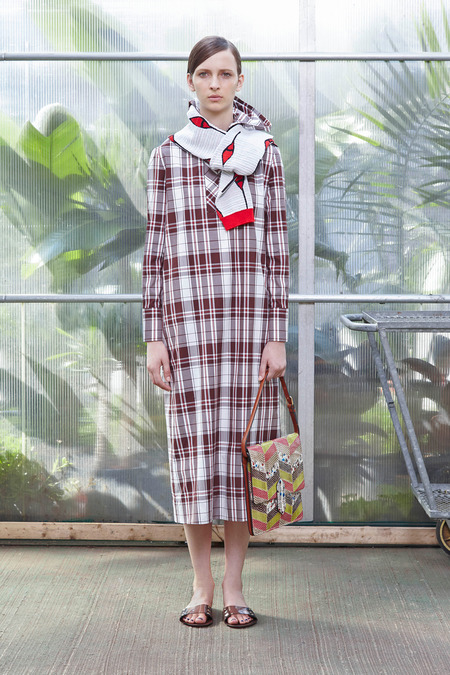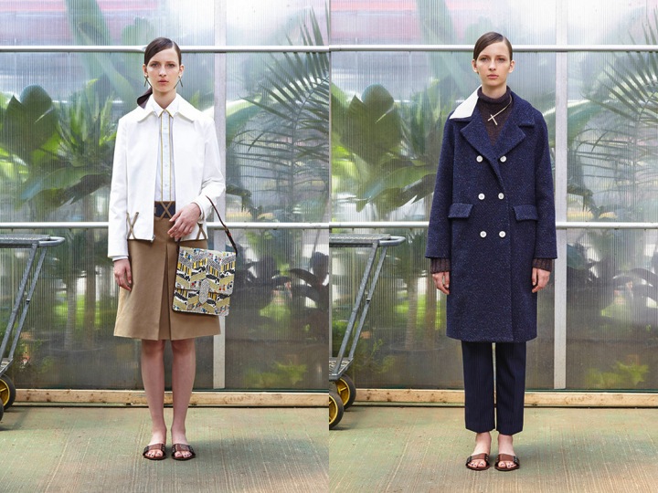 There is a new hot brand on the horizon created by Pookie and Louisa Burch. The offbeat brand called Trademark is just the name you need to know! Their new season was presented in cool look-book starring Waleska Gorczevski, which definitely matched the clothes. The picnic printed dresses, denim barn jacket with a red shearling collar and feltlike wool of one dirndl skirt are just the perfect fit for Summer gardening or autumn park stroll. Sweaters continue to be a highlight for Trademark; this season it was the trompe l’oeil twinset in royal blue and red that really stood out. Another clever idea: a silk evening pajama set in navy and off-white for the girl who wants to look pulled together without pulling on a dress in the best way. This pretty interesting brand is the one we are interested to watch evolve…