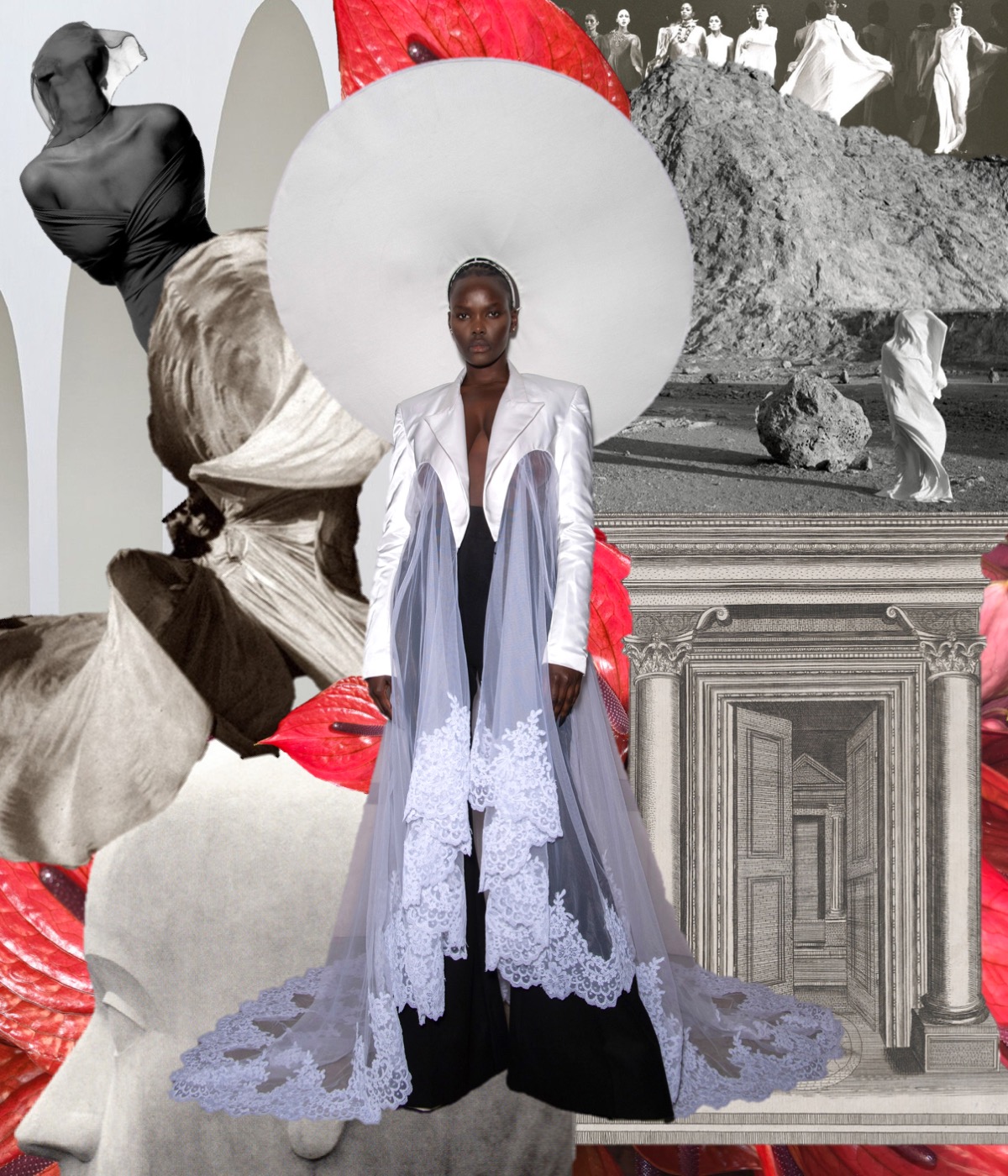 London Fashion Week started on a high note with Harris Reed‘s sophomore collection. The phenomenal autumn-winter 2022 collection, staged at the Saint John the Evangelist Church, was accompanied by Sam Smith’s live performance of Desirée’s “Kissing You”. The musician was surrounded by an elaborate set of paper clouds and models wearing creations made from repurposed fabrics. And here’s another magical detail about Reed’s latest outing: those fabrics came from the home of the heir to the Bussandri upholstery empire, who the designer happened to meet in a café in Northern Italy where his mother lives. “She looked like Donatella Versace’s twin sister. I said, ‘I love your bag.’ She said, ‘Oh, it’s actually from our villa…” And the rest is history. Titled “60 Years a Queen” after Sir Herbert Maxwell’s 1897 book about Queen Victoria, Reed’s collection investigated Victoriana through a “Yas, queen!” club kid lens. “I love how queer culture took on this regal fabulousness,” he explained, gesturing at a gender-nonbinary house model wearing an elongated plush golden suit repurposed from those Bussandri fabrics. As for the rest of the young designer’s silhouettes, they weren’t exemplary of a collection created to explore a specific design idea. Rather, they were DIY-esque explorations of the language of haute couture, and, to a larger degree, testament to the fact that the Harris Reed brand isn’t necessarily about design, anyway. It’s about him as a performative phenomenon rooted in the generational values expressed through his genderless creations and the nonbinary people he puts them in. The message was illustrated in a breastplate spliced from a male and female torso, then pierced with arrows Saint Sebastian-style. But Reed is far from a martyr to his cause. In fact, business is going so well he’s happy he didn’t go down the ready-to-wear route like some of his Central Saint Martins classmates.