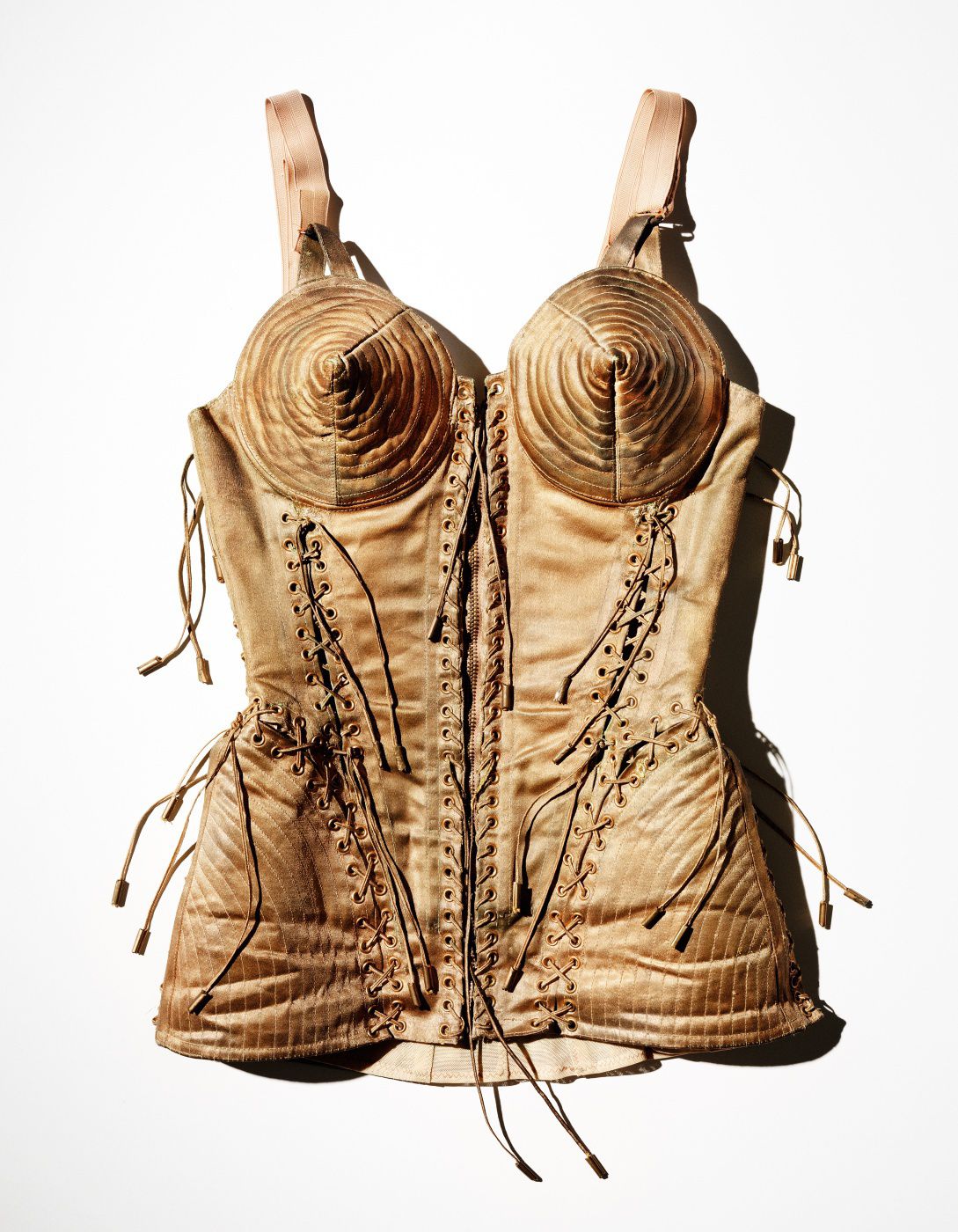 n his collections, Gaultier questioned the concepts of gender, nudity and eroticism. While basing his ideas on those, Jean started to use textiles that weren’t used in couture before – latex, leather, fish net, harness and other fabrics that are associated with the word sexy. He offered hypersexualised clothing (like corset dresses) and evoked a new type of romance and fetishism in the world of fashion. In the last section of the exhibition, you can see the Urban Jungle – a fierce dose of colour and references to various ethnic groups. bullfighter bolero jackets, the shtreimel and long coats made of rabbits, gilets from Mongolia, geisha kimonos, flamenco skirts and African masks as the new bride alternative. And all of that modified with his long-time signatures – corset silhouettes and intense emphasis on details. Seeing all of these stages of Gaultier’s career seemed like a dream-come-true. And having a chance to observe and have a look at all those clothes, scenarios and extravagance felt quite insane, but great.