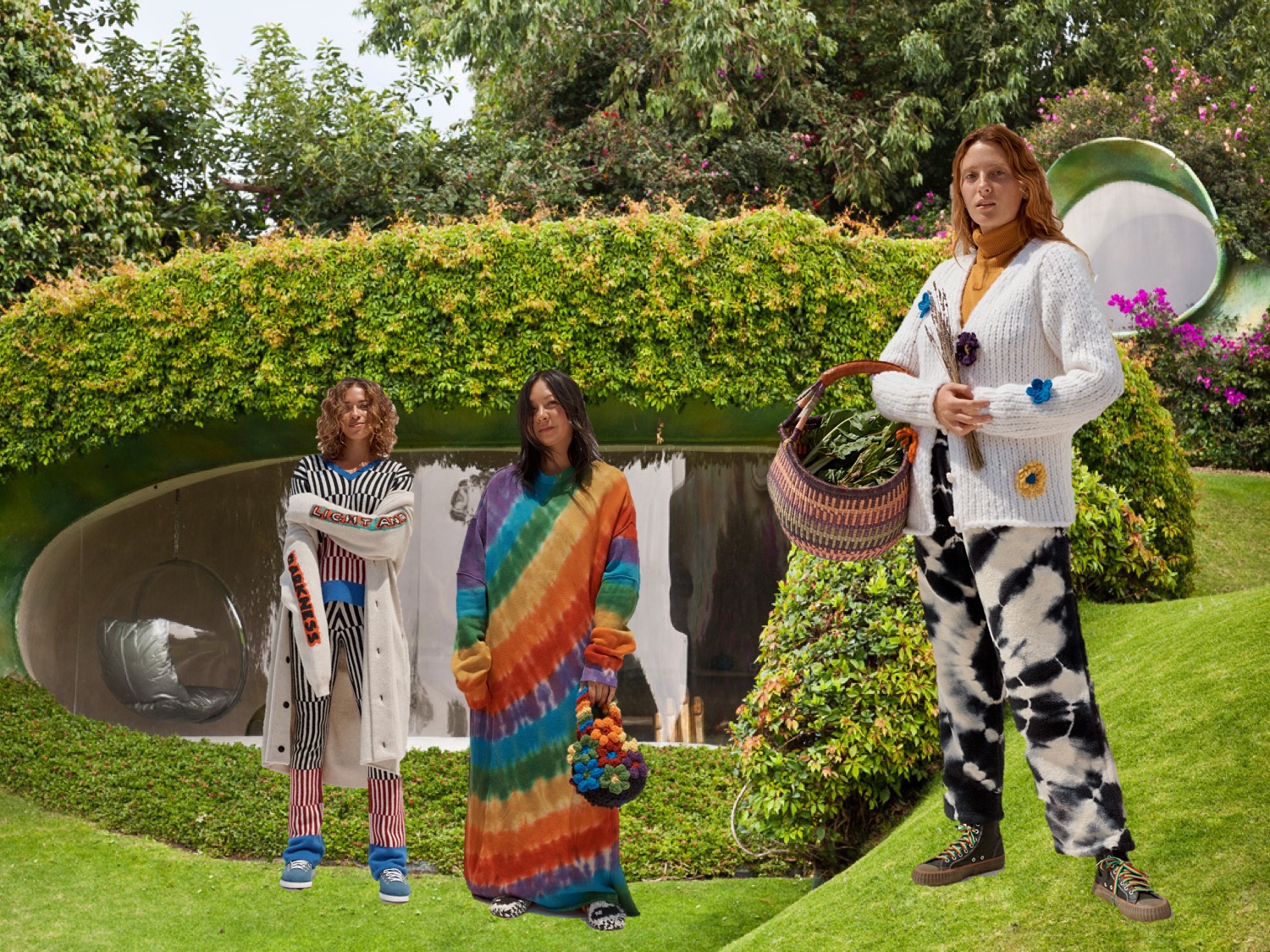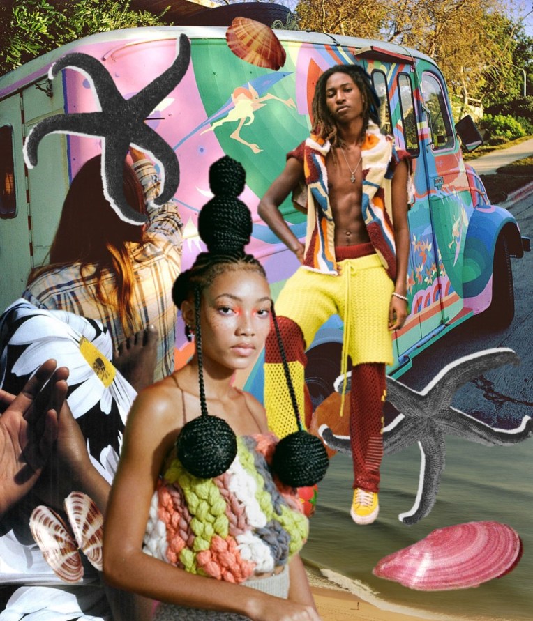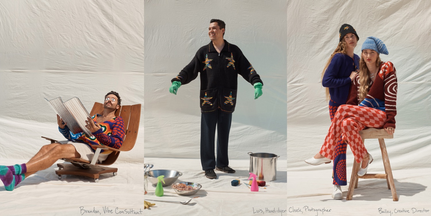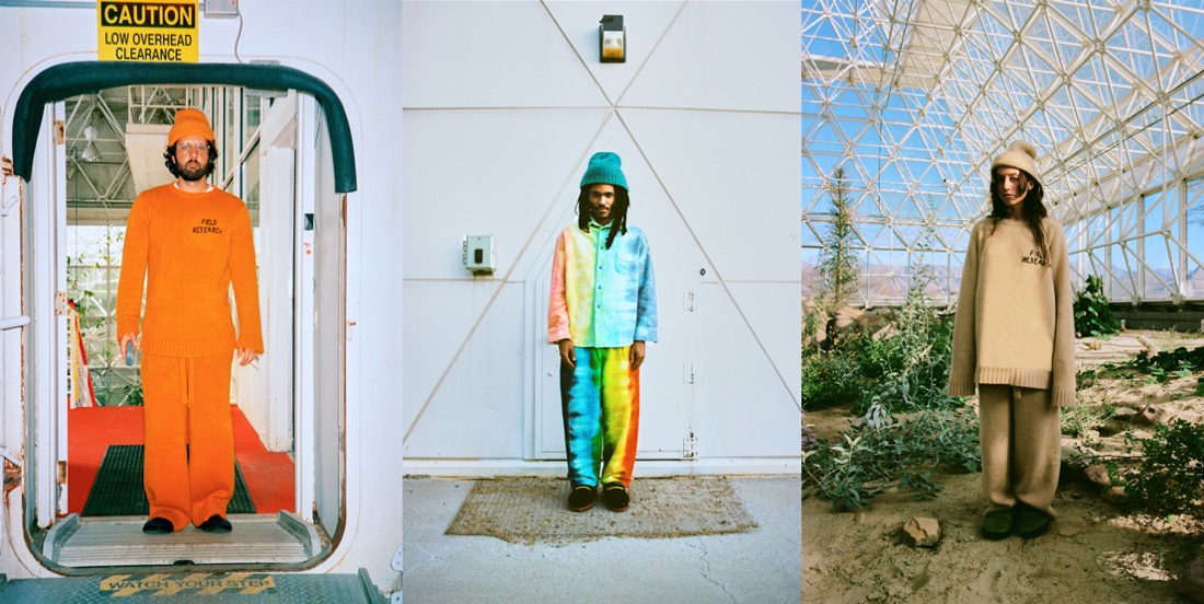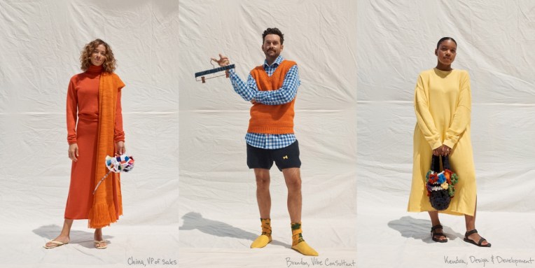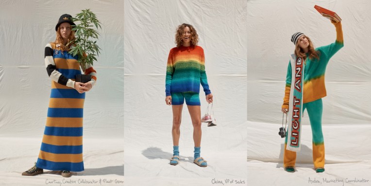 It’s back to groovy basics at The Elder Statesman. “Resort is holiday, so we tapped into a lot of our heritage, traditional kind of motifs,” Bailey Hunter, the brand’s creative director, said. “Florals, tie-dyes, stripes – all the things that we’re known for, we reinvented them in a way; and we’ve used a lot of new woven materials that we’ve brought into our library.” Materials – and yarn, especially – are king at Elder Statesmen. But the brand keeps on evolving into other categories. The yellow suit that opened the lookbook is a cashmere-cotton-wool twill made in Italy that feels like the softest and lightest denim. Another suit – the brand calls it “relaxed tailoring” – is made from Italian 50/50 cashmere and wool and comes in three colors: rose hip, dark green, and bark, in both men’s and women’s styles. A highlight of the collection was certainly the wool donegal made on a vintage loom in Italy in colorblocked squares of gray, navy, and wine. In the lookbook it appears as a wrap skirt secured with an oversized safety-pin and styled with a cashmere hand-painted crewneck sweater. Together, they’re youthfully punky and quite timeless.