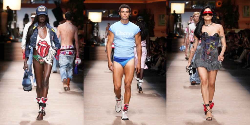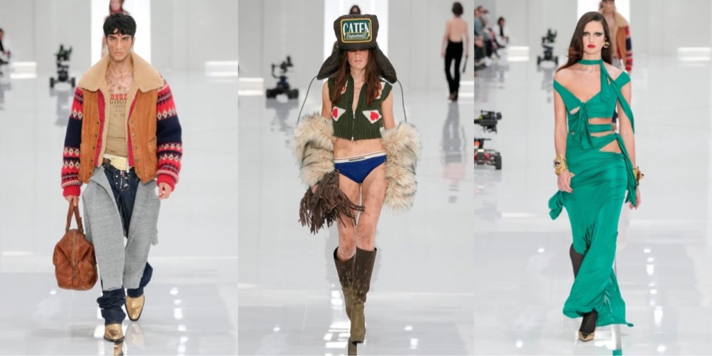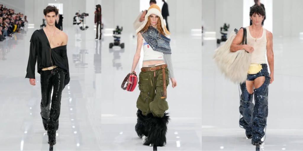 Yesterday in Milan, Dean & Dan Caten celebrated 30 years of DsQuared2: three decades of naughty bravado, sultry hedonism and campy glamour. Their autumn-winter 2025 fashion show, which had everything from a Doechii performance to Naomi Campbell finale walk, was a glorious look-back at the Canadian brothers’ all-time favorite runway characters. There were cowboys, lumberjacks, bombshells, BDSM aficionados, high-octane starlets. It all ended with Brigitte Nielsen dressed as a police officer, arresting the Catens – who, dapper in tuxedos and towering platforms, broke free from their cuffs, kicking off a raucous after-party. Fun fact: the Dsquared2 line-up included collaborations with Magliano, Vaquera, and Bettter, all of whom were welcomed into the Catens’ archives to rework past designs. The brothers still know what’s up.