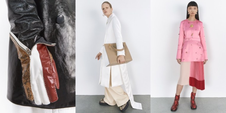 There’s always something very joyous and positive about Francesco Risso‘s approach to designing collections for Marni. For pre-fall 2019, which starts to hit the stores, he crashed prints and textures without much caution, creating a beautifully chaotic wardrobe for an equally unique personality. The utilitarian elegance of uniforms was translated into elongated dusters, sleek car coats and double-breasted peacoats in thick fabrics like felted and pressed bouclé, padded satin, polished leather, shearlings and ponyskins. Psychedelic brocades and Lurex jacquards were used in one blouse, while Inuit-inspired prints were mixed together in opera coats and skirts with half-plissé side panels. The recurring use of natural materials is a nod to the no-waste, responsible approach the designer emphasizes. I think Marni, with Risso’s folksy aesthic, can take a step forward and start making its collections from upcycled materials, too. And incorporate traditional artisans’ work into each collection. This would be a brilliant example for other Italian brands to follow.