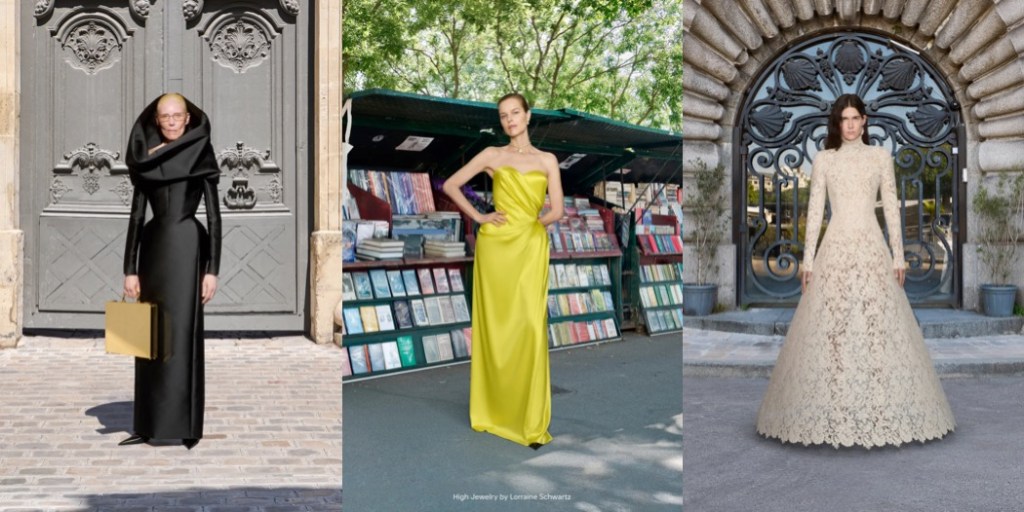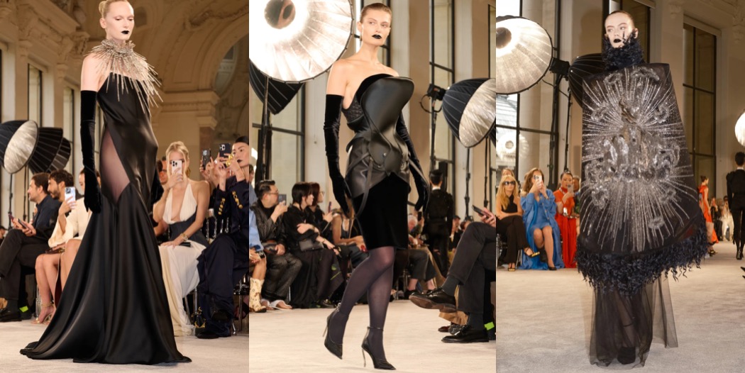 Sparking a shock effect is obvious as day for Daniel Roseberry and his vision of Schiaparelli; ultimately, it was Elsa who coined Shocking Pink. Yet there was nothing pink about the autumn-winter 2025 haute couture show. Roseberry continues to examine radical restraint – of the woman’s body, rather than the discipline of dress-making or tailoring – and this collection felt darker than usual. It referred to Schiaparelli’s late 1930s collections, which were peak surrealist – but also carried a sense of growing melancholy and unrest, as if they foresaw the upcoming tragedies of Second World War. There are many indicators that the world we know today is off to a burning, unstoppable crisis, so it’s no wonder why Roseberry is in a gloomier mood. But then there’s the shocker that lets the mind escape for moment: amidst the corseted matador suits, body-morphing padding, hourglass shapes and heavily embellished gowns, a red corseted satin dress constructed with a fake torso and breasts in the back, with a pulsating (as in for real, not trompe l’oeil) red rhinestone heart necklace hanging just below the nape of the model’s neck. The sight was both sinister and highly body horror, somewhere between “The Substance“, “Death Becomes Her” and “Suspiria“. But it also screamed: madame couture has arrived.