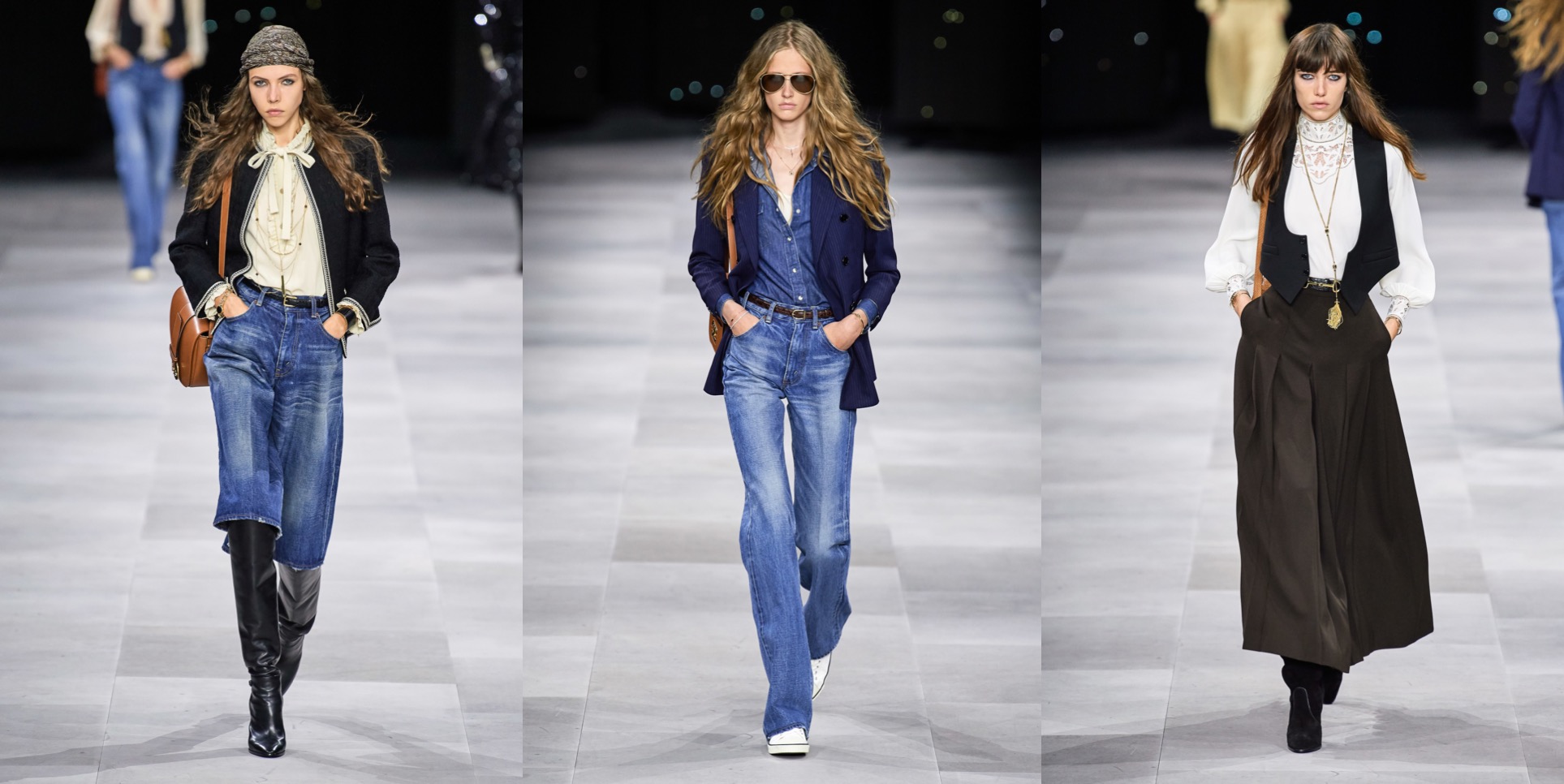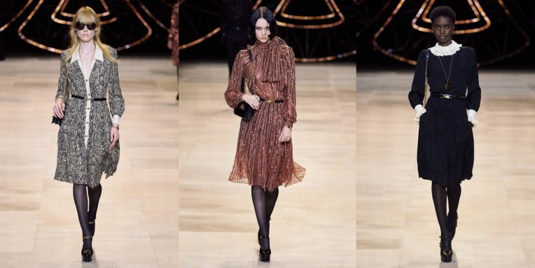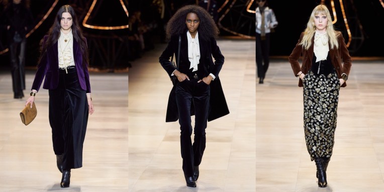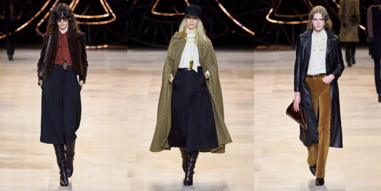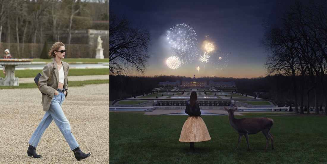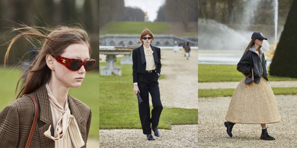 Hedi Slimane wouldn’t be himself if he wasn’t obsessed with youth – even for a moment. But there was something unexpectedly intriguing about his Celine vision of lockdown-era teenagers, who are totally fed up with the real world and induldge in fancy, Disney-like daydreaming. Definitely, the collection’s video was a highlight. The audienceless show was set amongst the breathtaking gardens of the Château Vaux-le-Vicomte, some 55 kilometers outside Paris. The always-sad Hedi girls walked casually past the exquisite formal fountains and pools landscaped centuries ago by André Le Nôtre. It’s landed as a sequel to the last Celine menswear show, in which Slimane’s young chevaliers roamed the battlements of the Château Chambord in the Loire valley. Clothes-wise, this collection was rather usual Slimane offering. Traditionally, the uniform Parisian wardrobe is paced out and remixed in that on-point manner that has made French girl-style the envy of the world. It’s that knack of pairing something posh that might have belonged to your mom or dad with something casual. Throwing on a tweed hacking jacket or trench coat with exactly the right cut of bashed-up old jeans is also always a good idea. The new additions included nods to princess wardrobe: a heavily embellished ball-skirt worn with a heavy leather biker jacket, for instance. There was a line in Slimane’s show notes which alluded to a “utopian parade and melancholic daydream of youth interrupted.” It ran after quotes from Baudelaire, Paul Verlaine, and Arthur Rimbaud – France’s decadent, libertine poets eternally famed for exalting the excess and pain of misspent youth. In a time when parties, clubs, festivals, and events have been banned for so long, the show ended with a shift to a fairy-tale scenario. A girl in a glittering, hand-beaded crinoline stood looking toward the chateau with fireworks exploding in the sky. There was a deer by her side, a tear on her cheek. There’ll be nowhere for the princess to wear that couture-ish crinoline yet – definitely not in locked-down Europe. Let her dream, at least.