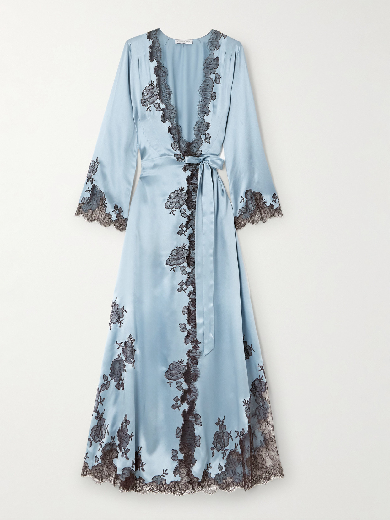 Carine Gilson Belted Lace-trimmed Silk-satin Robe