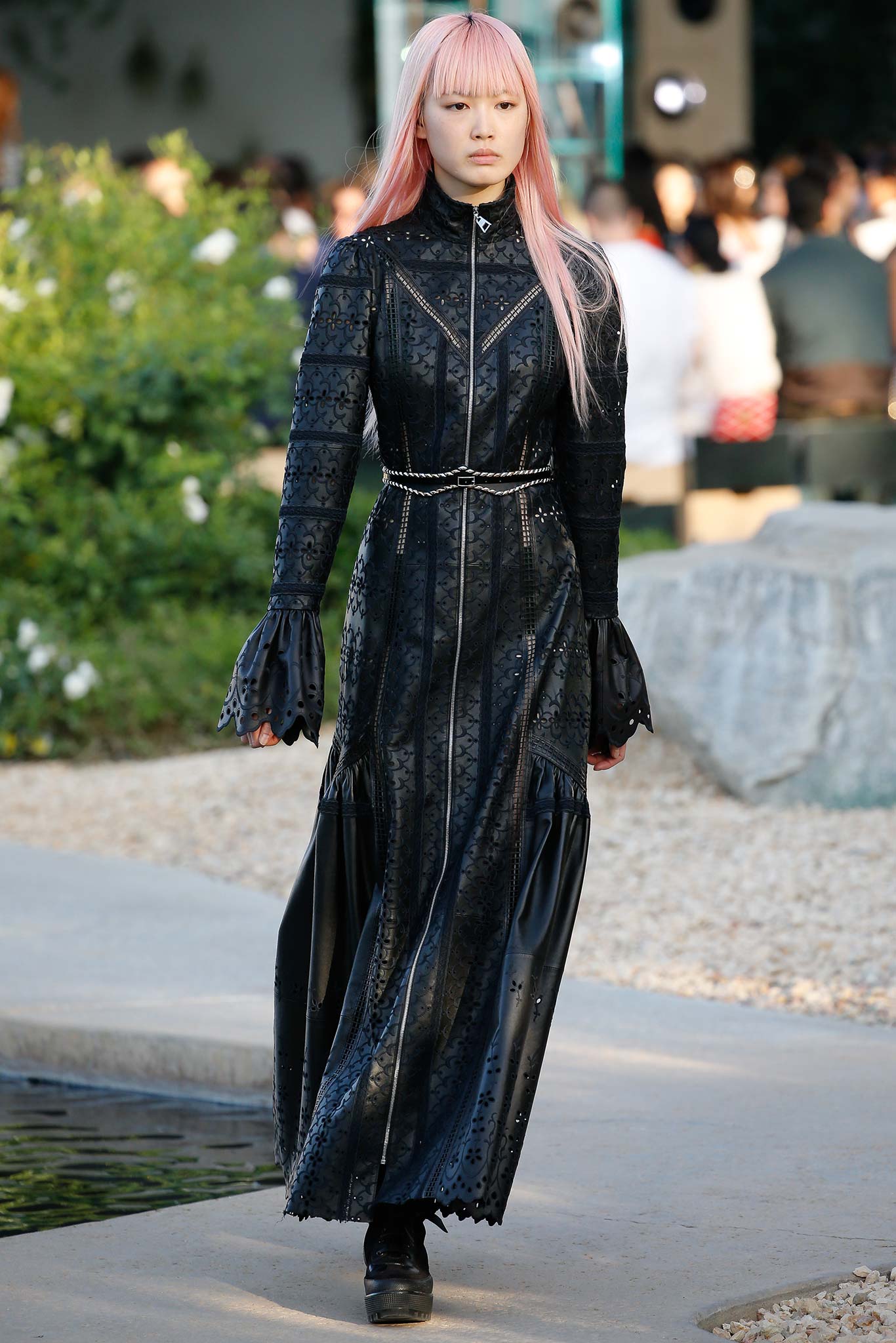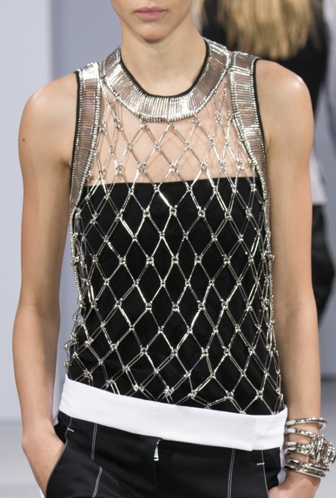 Nicolas Ghesquiere truly amazed me this time. Louis Vuitton‘s Resort 2016 is the first collection, in which he shows he is really the boss. The collection, presented in Palm Springs, California, was a sunny blast of fresh, slightly eccentric fashion. Nicolas presented the silhouettes, that have never been present in his previous shows for the house and Balenciaga. Long, woman-warrior dresses with embellished gems; high-waisted trousers with harness belts were everywhere; beautifully laser-cut leather jackets which reminded me of Victoriana era brought on the mood of Grimes and Lana Del Rey. But also, some sexy shorts and crop-tops appeared, giving us the vibe of the real all-American summer. But what spiced up the atmosphere of the show was the model casting. Ghesquiere’s favourite bae’s were here – the red-haired Natalie Westling, Argentinian it-girl Mica Arganaraz and the designer’s muse, Fernanda Ly with her mesmerising pink hair.