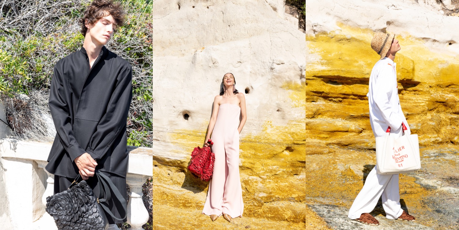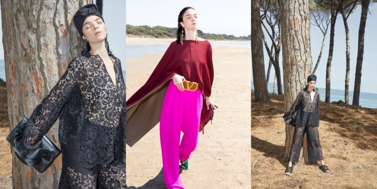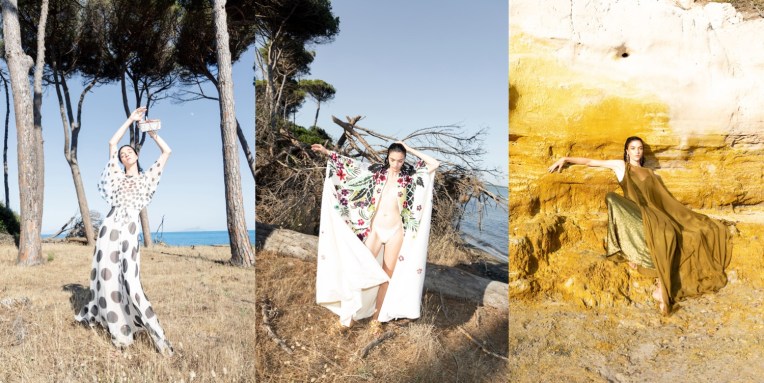 This is the ideal summer state of mind: Mariacarla Boscono dancing, laughing and sun-bathing at the Italian sea-side, wearing Valentino and being photographed by her friend – and the brand’s creative director – Pierpaolo Piccioli. Italy was the European country that was first tragically hit by COVID-19, and to many it seemed that good days aren’t coming back anytime soon. Now the country seems to gradually revive and the dream Italian summer is back on track. Optymism is winning. “I never stopped working,” Piccioli told Vogue during a Zoom call. “I profoundly love what I do; this is my passion, something fundamental for me – it isn’t just work.” The resort 2021 collection is the byproduct of the time spent alone drawing and painting, while remaining connected with his team. “I wanted to convey spontaneity and truth, even imperfection—but it’s the feel of human imperfection you long for right now,” he explained. “The collection was born out of flat drawings – paper and pencil, no styling, no mood board, just researching on paper shapes that linger in your head. A pure fashion process, as it should be done.” The human quality of creativity is paramount to Piccioli’s practice. He has imbued the rarefied world of couture with emotional values – exposing and revealing its craft and handmade processes, and shining a light on his team of seamstresses and artisans as essential players behind his fabulous creations. This center still firmly holds. “I wanted [to communicate] something even more personal, very close to myself. Conveying a sense of intimacy, a sentiment of individual connection, of emotion. I decided to photograph the collection myself because it seemed more coherent in this moment to send out a message with no filters, no manipulation, no other interpretation or mediation. I didn’t want the usual glamour of a fashion shoot,” he continued. “What I was interested in focusing on was what I’ve missed most in this confinement – the simple feeling of human connection, of shared love and friendship. This is what I wanted to bring about in my images.” Not surprisingly, simplicity is the collection’s key word. “It’s a radical simplicity though,” reflected Piccioli. “I wanted to be even more radical, in that the simplicity I’ve tried to achieve in shapes, volumes, and construction comes at the end of a process of resolved complexities. It’s a study and a project on cut, proportions, balance. Reducing and subtracting to reach the core, something essential and pure – but not more banal. Simple, not simplified.” There’s an ease and a fluidity of movement, a feel for freedom and effortlessness exuding from the lean silhouettes of caftans, elongated shift dresses, capes, and separates. Defined by strong, solid colors inspired by Mark Rothko’s chromatically powerful palette, pure shapes were infused with a vibrant, joyful flair. A few prints inspired by 18th-century tapestries were rendered as inconspicuous abstract strokes of color, as if they were just traces of memories, or shadows of the decorative motifs’ former selves. And what’s more special than a dear friend you’ve known and loved for years? “Mariacarla and I, we go back a long way,” he said. A spontaneous energy radiates from the images, shot by Piccioli in the natural surroundings of his home: a lake where he goes swimming; a sulfur mine where Pier Paolo Pasolini shot some scenes from his 1964 movie Il Vangelo Secondo Matteo. There’s a palpable sense of intimacy and of a familiar bond between photographer and model. Again, individuality and humanity are the pivots around which the collection, which was designed to appeal to both genders, came alive.