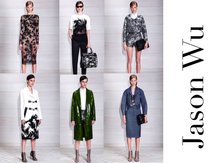 Jason Wu suprised me this Resort season. I usuall didn’t really like Jason Wu’s collection because they were always so formal. But, this time I am pleased! Lots of new materials, fantastic paradise prints, jeans jacketa and midi skirts, plastic trench coats, pink bra’s, transparent lace dresses… There is really a lot of telling. For sure Michelle Obama won’t wear any of these, but it looks more affordable than ever! Jason Wu, big bravo’s for the best (exequies with Marc Jacobs galmorous collection I wrote few days ago)!