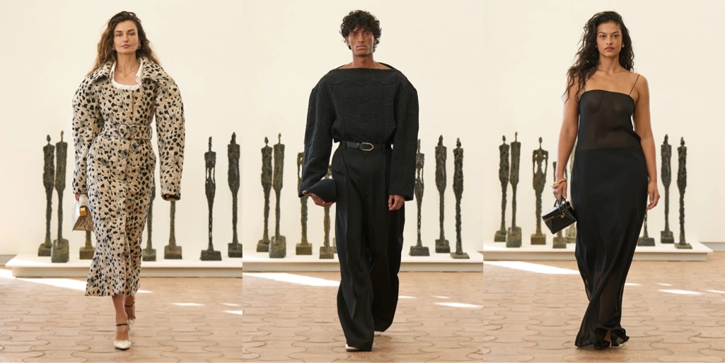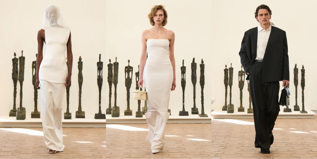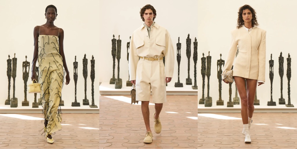 Jacquemus once again picked a signature, French location for his see-now-buy-now fashion show. I, personally, adore Fondation Maeght: when I visited it a couple of years ago, I was so entranced by the beauty of this art institution I never wanted to leave. Seasons ago, Nicolas Ghesquière of Louis Vuitton chose the Saint-Paul-de-Vence museum and its yards as his cruise venue, and he showed there some of his finest work ever. This place is a perfect location for a fashion show, yes – but only when the clothes match up to it, to all the Giacomettis and Matisses and Chagalls. Or at least build an intriguing, contextual, visual dialogue. I missed that part about Simon Porte Jacquemus‘ spring-summer 2024 collection. The rigid, overly statuesque silhouettes read and felt flat, some looks were even unflattering. The tailoring was just OK, just like the simplistic eveningwear. A pop of fringes here, a bit of leopard print there… it was all Insta-photogenic, but nothing else. A collection that would do much better in a white-cube setting in Paris. Although Jacquemus is repeatedly called a “marketing genius“, I still can’t grasp the connection between this line-up and the Kristin-Davis-as-Charlotte-York promo. And then Kylie Jenner and Julia Roberts in the f-row. Make it make sense.