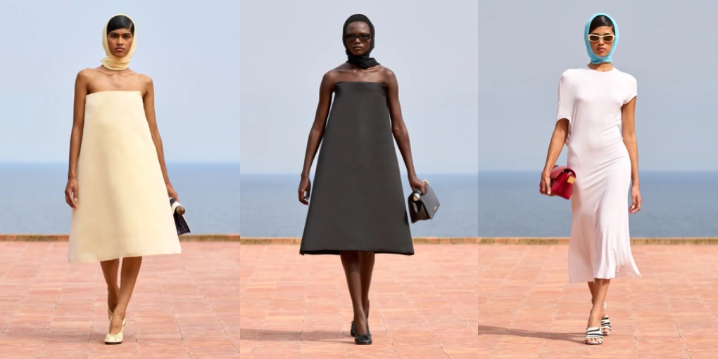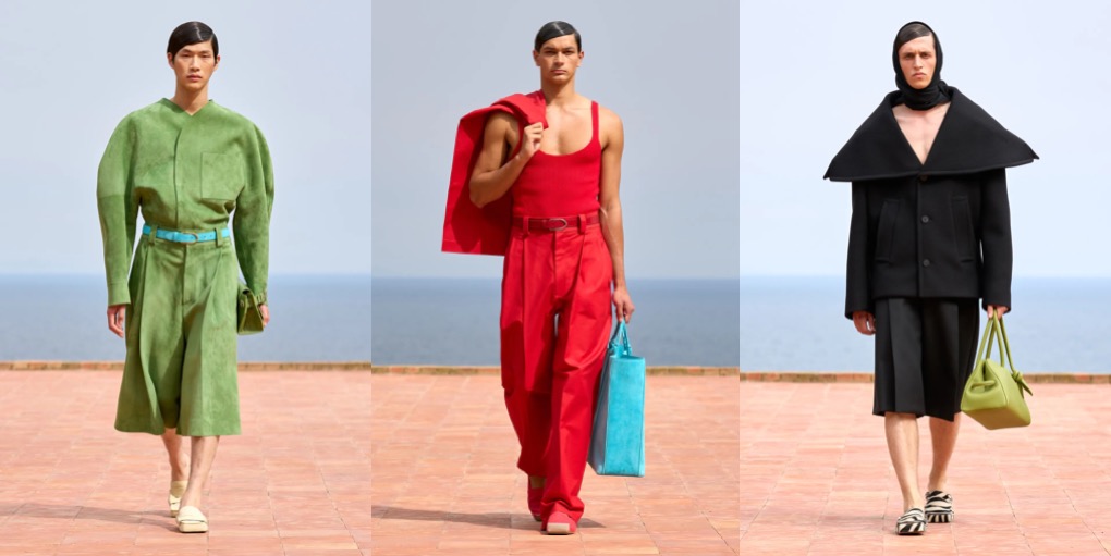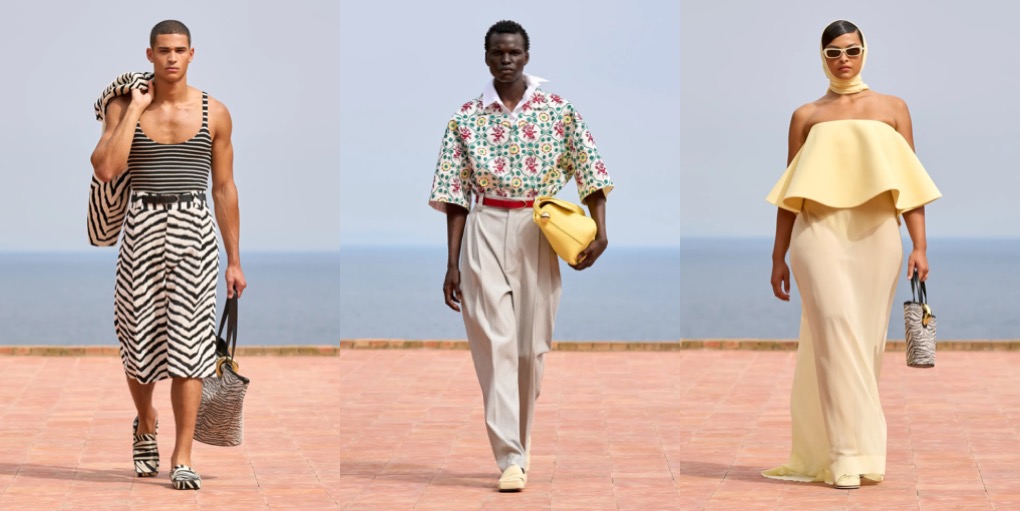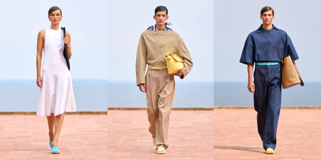 Another season, another postcard show by Jacquemus presented in a very Jacquemus-esque location. We’ve had lavender fields in the south of Provence, we went to a beach in Hawaii and visited Fondation Maeght near the idyllic Saint-Paul-de-Vence. Yesterday, the French designer flew his muses and friends to Capri and drove them to the flame-red Villa Malaparte to be exact. Designed by Adalberto Libera for Curzio Malaparte, starring in Jean-Luc Godard’s “Le Mépris” and once photographed by Karl Lagerfeld for a coffee-table book, this place is charged with history and a certain art-centric aura. Did Simon Porte Jacquemus do this place justice via his new season clothes? The designer has a tendency to scout highly-photogenic locations and create a masterful marketing ploy around it that certainly fuels an instant selling boost of his brand. If that strategy didn’t do commercial wonders, he wouldn’t repeat it each season. But the actual clothes tend to meander and stumble, being largely disconnected from the location except for a couple of architectural, yet flat-looking silhouettes, and the fluffy coat-dress that visually reassembled the bathrobe Brigitte Bardot wore in the aforementioned Godard film. I also didn’t feel Capri-ness in this collection. Everything looked quite stiff, even over-calculated, lacking a sense of sprezzatura. While menswear had daring moments – like tops derived from sailor’s smocks or really good looking pants with sharp pleats – womenswear was rather uninspiring and repetitive, focusing on flowing sack-dresses and hourglass silhouette that made the models look too covered-up. One can’t not respect what Jacquemus built: a successful, independent brand that’s based on a childhood dream. But I wish the designer was more of a designer when it comes to his fashion.