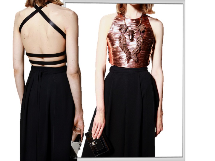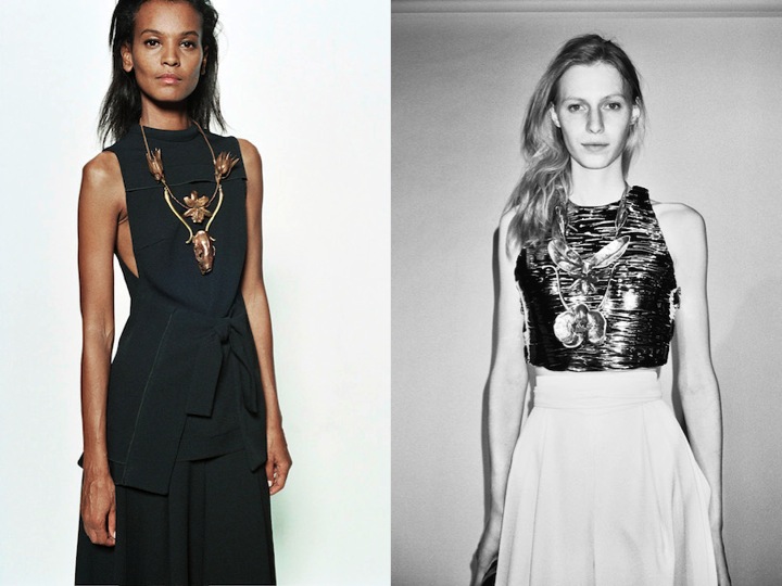 During the SS14 Fashion Week in New York, one label that was the most buzzed around was surely Proenza Schouler. The designer duo, Lazara Hernandez and Jack McCollough, made their sophisticated and eponymous label the hottest export product from the Big Apple! Gathering the coolest models around (Jamie Bochert and Edie Campbell, for example?), mixing fabrics that no one other would use (LUREX!) and creating the new New York chic, the PS boys really nailed it. The collection was kept in warm, creme / red / gold colours with some small dose of tree branch print. We also spotted some ethno vibes- the bags and coats with this navajo-like material and all these metallic bustiers with golden flowers and buggs on it! I found the shoes too a bit African inspired- these wooden platforms and leather embroideries made it this season on the accessory list.