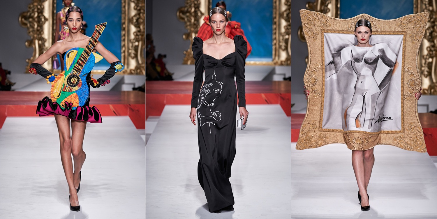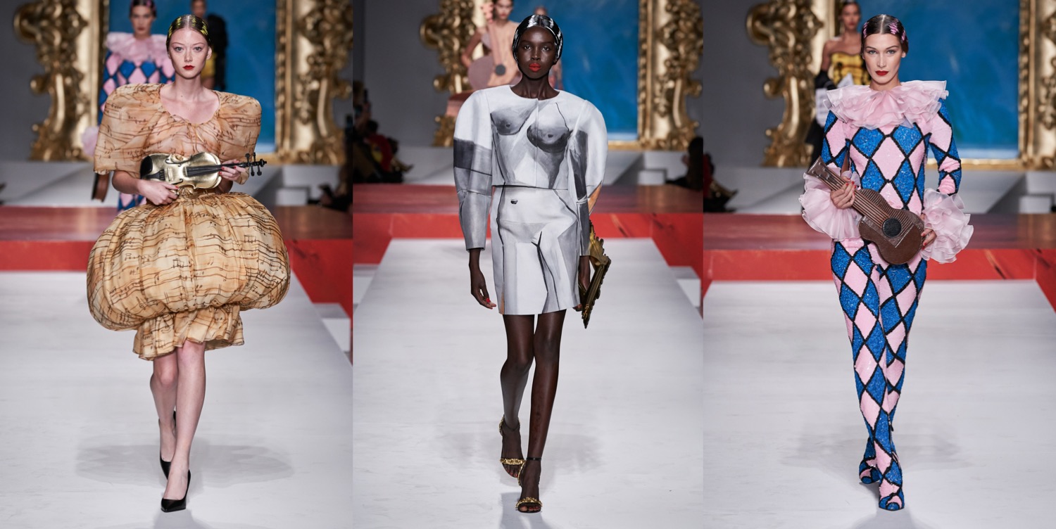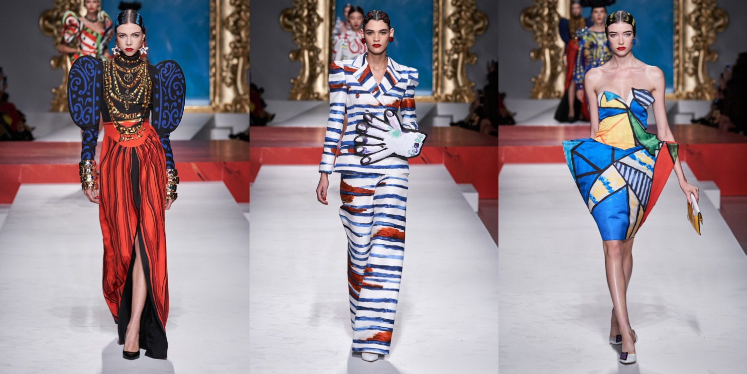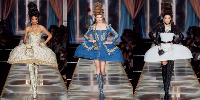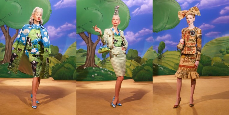 At Moschino, there’s no such thing as too much camp. Jeremy Scott started his spring-summer 2023 collection with a bunch of looks that nodded to Yves Saint Laurent’s signature silhouettes, and ended with over-the-top eveningwear. But that wasn’t just that. One thing connected these two parts: inflated, plastic pool toys, which were everywhere. “Everybody’s talking about inflation,” the designer said backstage. “The cost of everything’s going up: housing, food, life. So I took inflation into the collection.” He wasn’t talking about rising hemlines or oversized volumes either. Every look save for a small handful had some sort of inflatable detail, be it a heart-shaped collar or hemline or “broken heart” lapels, one half on either side of neatly tailored jackets. “Sometimes we feel like we’re drowning,” Scott continued, acknowledging the bad news stories clogging our feeds. “I’m sure you do. I know I do. But no matter what is going on, we have to save space for joy, right? The darker it is, the lighter I have to be.” Making good on that promise, he embellished his evening looks with pool floaties. The most inspired of the bunch included a strapless purple column cinched at the waist with the deflated ends of a pink raft, its pneumatic ends creating a train, and another strapless number that was accompanied by a Lilo stole. By the end, Imaan Hammam’s look was more of a floatation device than gown, but that was Scott’s point. Anyone who could use a little buoying up, Scott’s your pool boy.