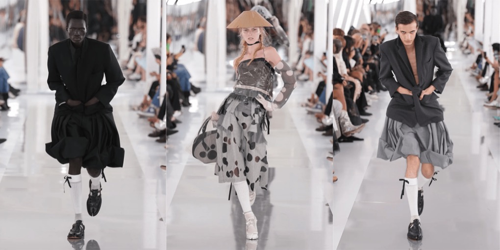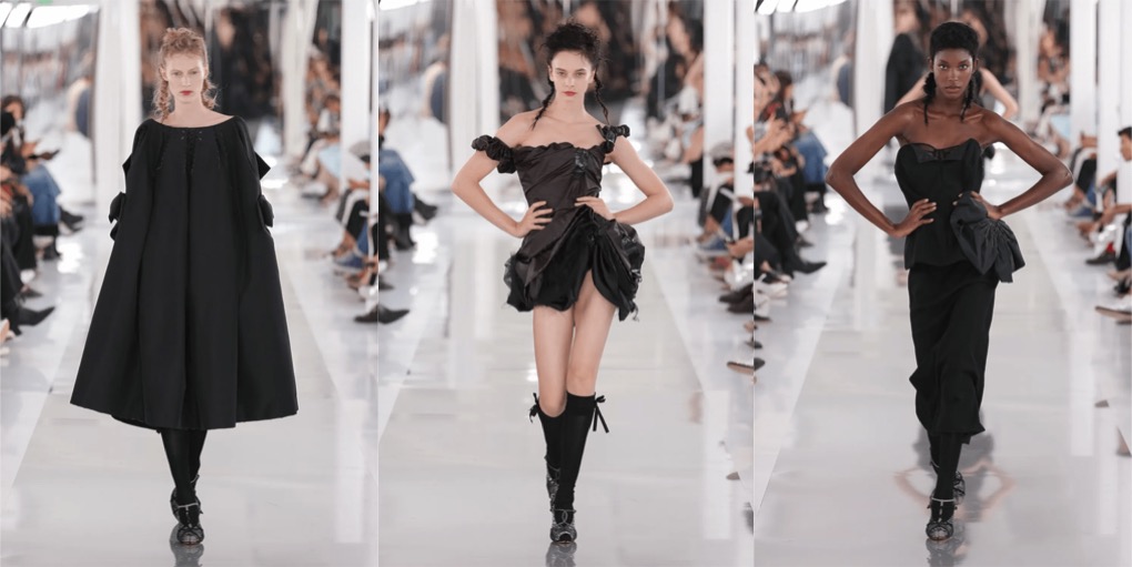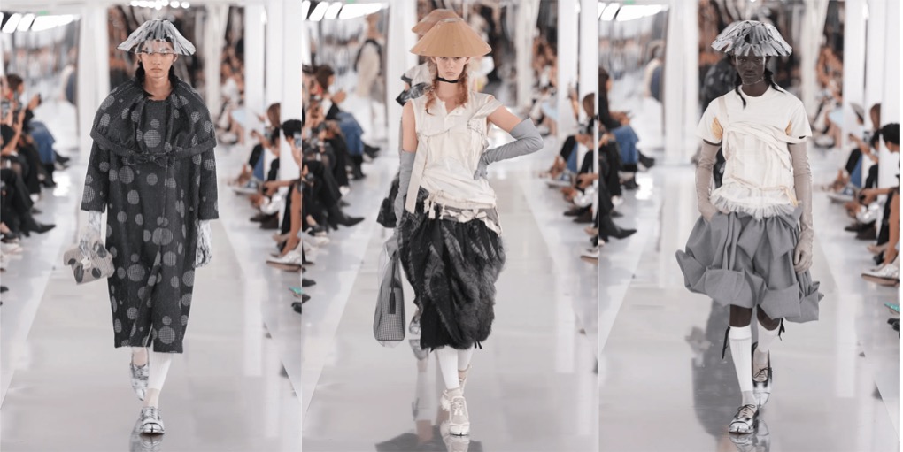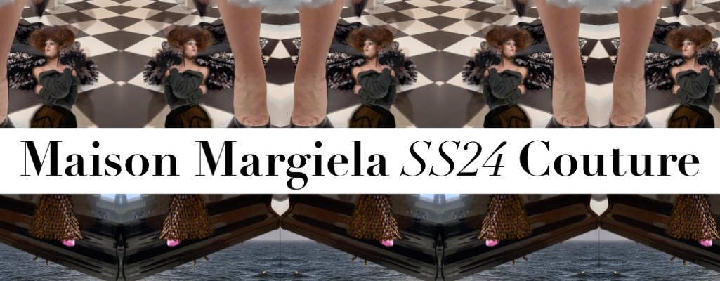 In the last couple of seasons at Margiela, it was clear that Galliano is returning back to himself as a designer. But this spring-summer 2024 couture collection feels like a total release, total encapsulation of the unhinged Galliano – even not from the Dior days, but rather the early 90s shows in Paris under his own name, that stunned with theatricality, pure romanticism and casts of model so authentic you believed you’ve been transported to a different epoque. The scene: under the Pont d’Alexandre III after dark, down rain-soaked steps, with the Seine roiling alongside, a rancid Parisian nighttime joint with bare floorboards, cafe tables, dim mirrors, and a bar overflowing with spent drinks. The runway mise-en-scène suddenly turned into a living Brassai’s 1920s and ’30s portraits of the night-time underbelly of Paris’s clubs and streets. Galliano’s transferences into cutting, ultra-extreme corsetry, padded hips, erotically sheer lace dresses, and wildly imaginative hair, chiffon-masked makeup, and eerie doll-like body-modifications took a year. A year to work on a production that seamlessly mixed film – which played in the mirrors – into the scenario, showing lovers, dancers, and gangsters prowling the banks of the Seine. To make it seem that these strutting denizens, fugitives from fights, or half-dressed from sexual encounters, clutching their moon-bleached coats or scrappy cardigans around them were actually congregating from the riverside and into the club before our eyes. Through some of Galliano’s beautifully delicate hourglass dresses there was pubic hair to be seen through tulle and lace (they were merkins on underwear, but still bound to stir up a storm). Some of his indescribable techniques looked almost like walking paintings, greenish-pink watercolor nudes with blurry dabs for eyes. All the images and impressions from this show will be burned on the mind’s eye for many reasons and many years.