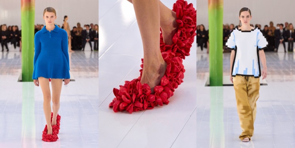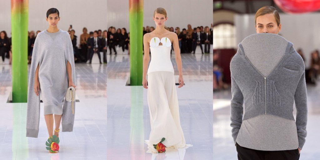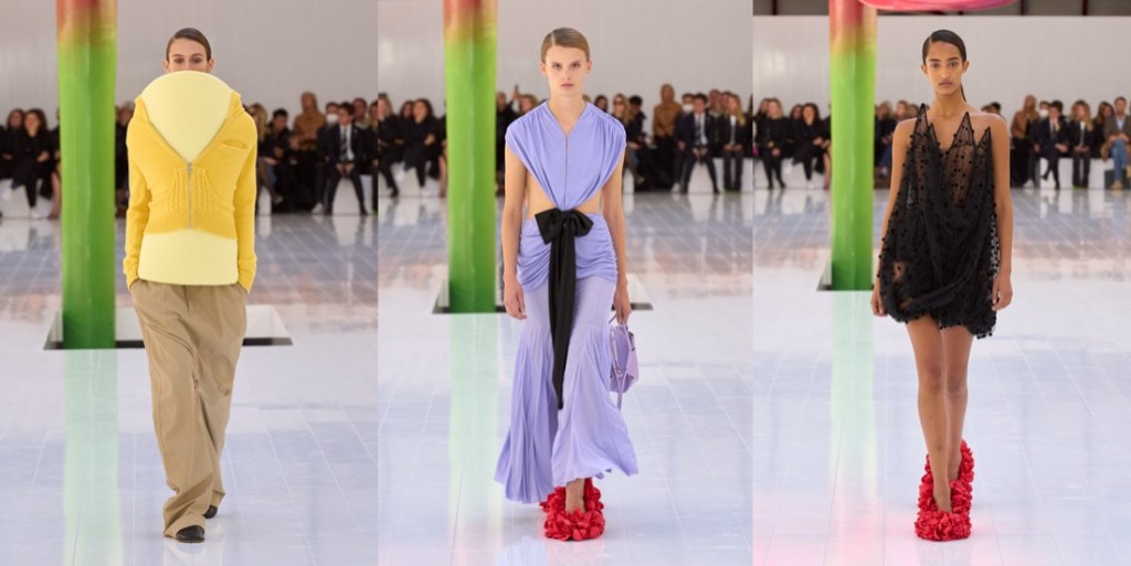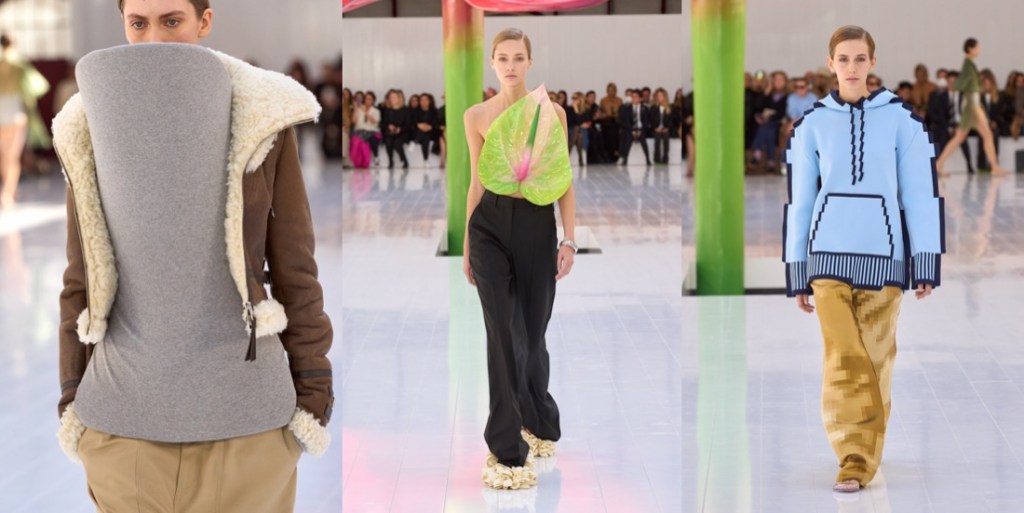 JW Anderson‘s menswear events have become the most exciting moments of Milan Fashion Week. And there’s a lot to unpack in the autumn-winter 2023 collection. Jonathan Anderson reflected on all his past work by returning to one of his most transgressive statements. Ten years ago, his ruffled shorts, skirts, and minidresses – all modeled by men – drove the London fashion scene crazy. Recalling the moment pre-show, Anderson said: “I found it very strange… that collection was about a shared wardrobe.” Even if, he added, he knew he was being something of a “brat” at the time, the force of the reaction revealed the depth of the subversion. He returned to it tonight to interrogate the notion that recent history’s radical rephrasing – even if still polarizing – discourse around gender would soften its impact. He said: “this feels like an old fashioned thing for myself to say now, but it is still something as a society we have yet to work out. How do we package people? Do we need to package people or not?” The Milan show opened with two boys in underwear holding bolts of cloth: the undressed waiting to be dressed, the unpackaged waiting to be packaged. Then came two models clutching pillows inserted into their garments, whose limbs were painted with tomato images. And then came the ruffled short. The difference between this and the original was that version 2.0 came in leather, but otherwise it was effectively a fresh edition of the garment this designer could barely sell the first time round, and which he still works to buy back at auction when they re-enter the market. The following looks teased your notions of facade and identity. The fully grown non-binary cast wore anthropomorphic frog-faced slides and boots by Wellipets, a recently relaunched but until now kids-only brand that was once worn by the British royal family’s heir and the spare back in the 1990s. As any basic biologist knows, certain healthy frogs can change gender according to circumstance. Torsos, some butch and some slender, were printed on terry vests worn over slouchy pants. There were some infantile animal print briefs and a series of uniform-aping duffle coats, fastened with lock and key instead of horn and eye, in leather and faux fur. The ruffle returned on occasion. Certain garments came inserted at the top of the spine with the decorative leather and plastic SIM cards that also acted as show invitations. One model had his placed over his heart. “Everyone’s attached to one,” said Anderson of this detail. “The idea is that you are taking it and turning it into something completely useless. Also all technology becomes useless in the end.” In the whole this was a radical wardrobe ready to come out and be inhabited, now that the times have caught up with the spirit of its inception.