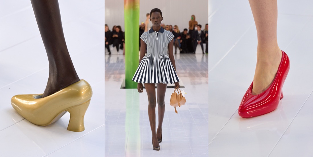JW Anderson‘s menswear events have become the most exciting moments of Milan Fashion Week. And there’s a lot to unpack in the autumn-winter 2023 collection. Jonathan Anderson reflected on all his past work by returning to one of his most transgressive statements. Ten years ago, his ruffled shorts, skirts, and minidresses – all modeled by men – drove the London fashion scene crazy. Recalling the moment pre-show, Anderson said: “I found it very strange… that collection was about a shared wardrobe.” Even if, he added, he knew he was being something of a “brat” at the time, the force of the reaction revealed the depth of the subversion. He returned to it tonight to interrogate the notion that recent history’s radical rephrasing – even if still polarizing – discourse around gender would soften its impact. He said: “this feels like an old fashioned thing for myself to say now, but it is still something as a society we have yet to work out. How do we package people? Do we need to package people or not?” The Milan show opened with two boys in underwear holding bolts of cloth: the undressed waiting to be dressed, the unpackaged waiting to be packaged. Then came two models clutching pillows inserted into their garments, whose limbs were painted with tomato images. And then came the ruffled short. The difference between this and the original was that version 2.0 came in leather, but otherwise it was effectively a fresh edition of the garment this designer could barely sell the first time round, and which he still works to buy back at auction when they re-enter the market. The following looks teased your notions of facade and identity. The fully grown non-binary cast wore anthropomorphic frog-faced slides and boots by Wellipets, a recently relaunched but until now kids-only brand that was once worn by the British royal family’s heir and the spare back in the 1990s. As any basic biologist knows, certain healthy frogs can change gender according to circumstance. Torsos, some butch and some slender, were printed on terry vests worn over slouchy pants. There were some infantile animal print briefs and a series of uniform-aping duffle coats, fastened with lock and key instead of horn and eye, in leather and faux fur. The ruffle returned on occasion. Certain garments came inserted at the top of the spine with the decorative leather and plastic SIM cards that also acted as show invitations. One model had his placed over his heart. “Everyone’s attached to one,” said Anderson of this detail. “The idea is that you are taking it and turning it into something completely useless. Also all technology becomes useless in the end.” In the whole this was a radical wardrobe ready to come out and be inhabited, now that the times have caught up with the spirit of its inception.