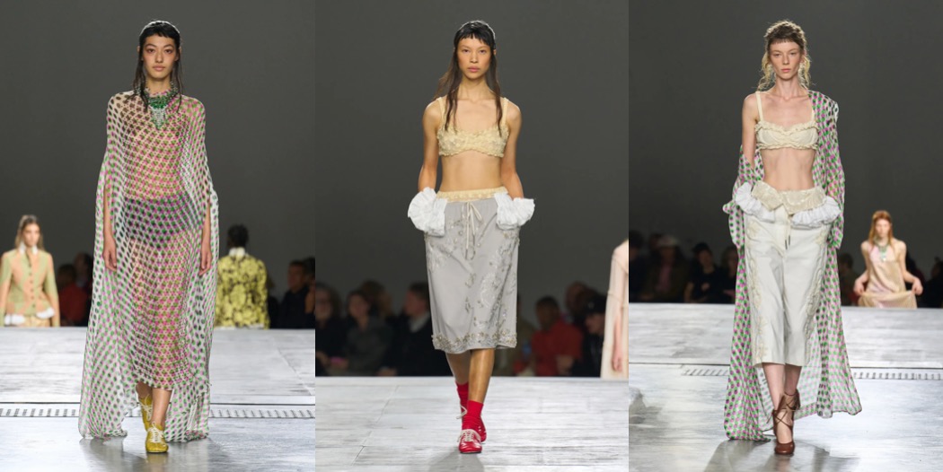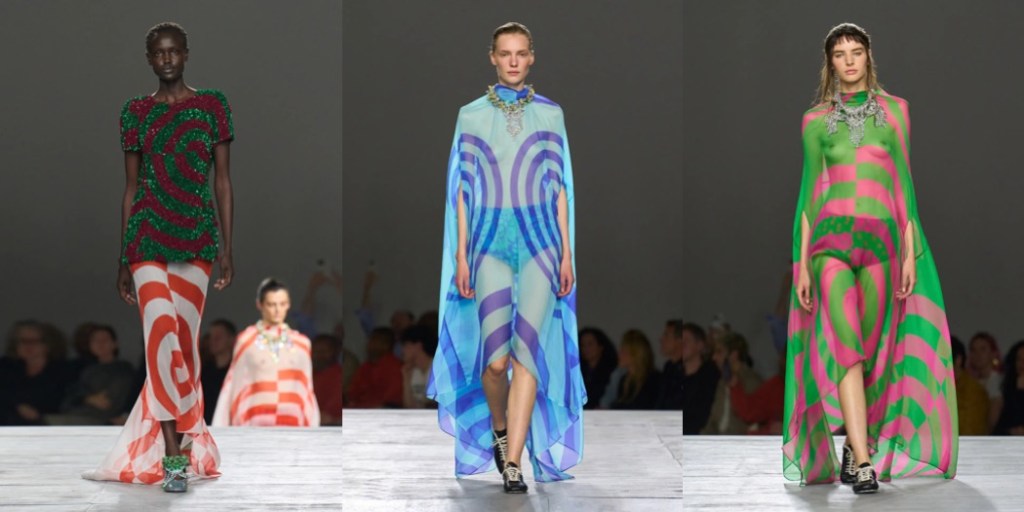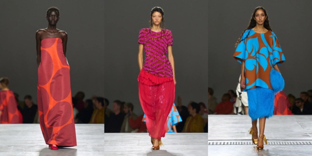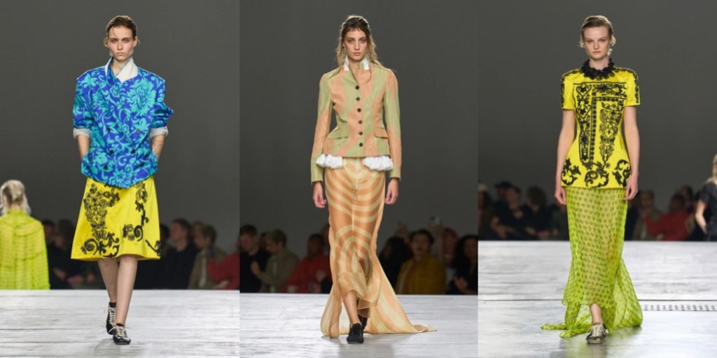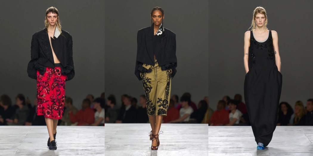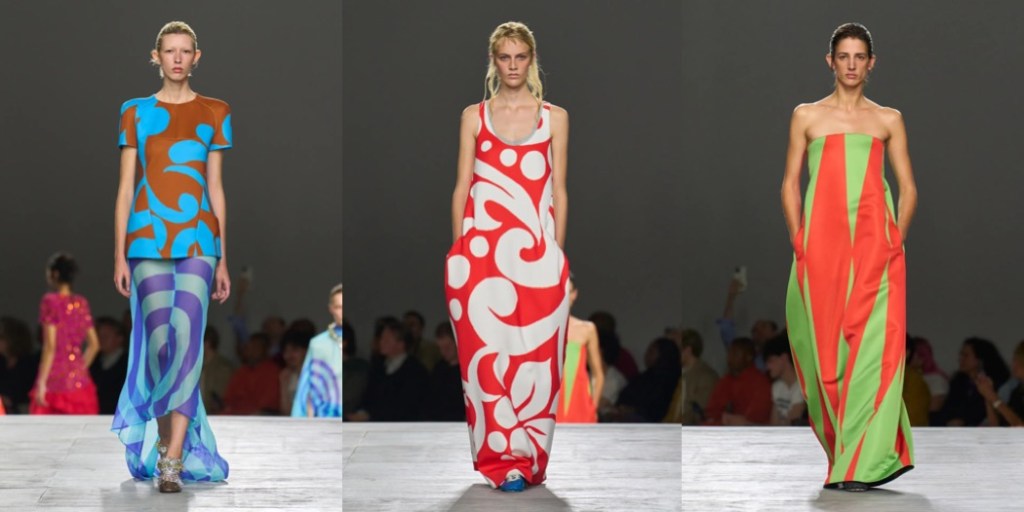 The Dries Van Noten collection is one I suspect I’ll appreciate more once it arrives in stores. Julian Klausner’s second outing for Papa’s brand was overall good, but somewhat… unresolved. He aimed to make the line-up feel joyful, easy, and optimistic – and he succeeded in that regard. To achieve it, he turned to surfing as his theme. “Being around surfers is always a good time,” the designer mused. A slouchy men’s jacket paired with red floral bermudas channeled a surf-chic spirit, as did the psychedelic prints – just as brilliant as those from Dries’ archives. And yet, despite the abundance of looks and myriad styling options, the collection still left me wanting something more.