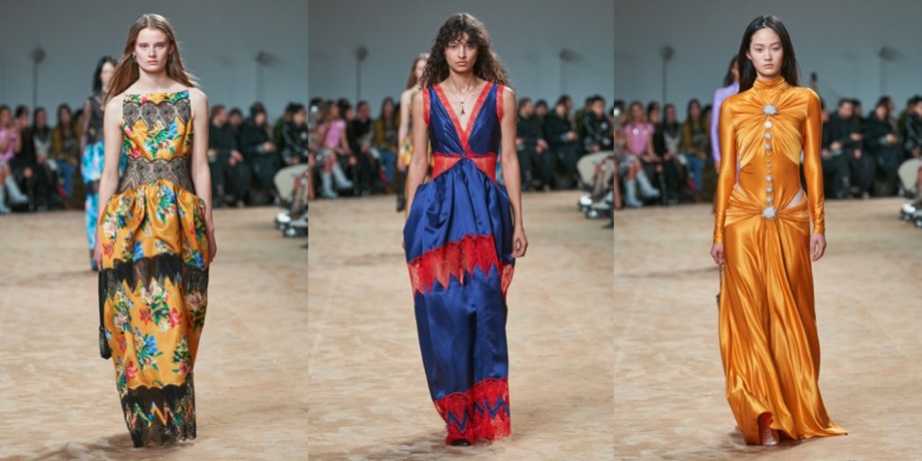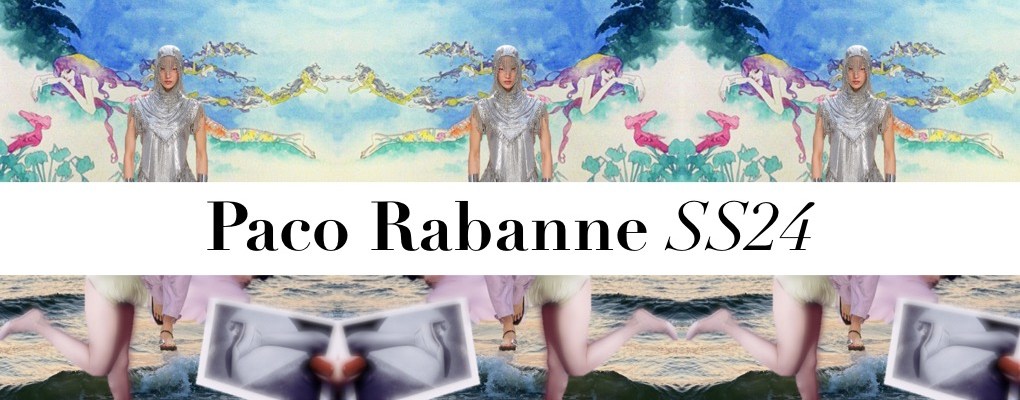 Julien Dossena‘s autumn-winter 2023 collection for Paco Rabanne was an homage to the late founder of the brand, who passed away this February. In his most convincing offerings for the house, Dossena revisited Rabanne’s design heritage through a contemporary, not overly literal lens. This collection, however, felt more like a straightforward tribute which ranged from Paco Rabanne’s famous space-age era to less-known surreal phase (echoed in Salvador Dali paintings used as prints for the eveningwear; the surrealist was Paco’s friend). There was of course plenty of chain-mail, used in mini-dresses that looked exactly like the ones the brand’s founder did in the 1960s. According to videos from the show that flood social media, all the metallic looks gave comforting, ASMR-sound effect. Indeed, Dossena’s voice felt exceptionally silent in this collection due to its nature. Let’s treat it more like a run-through Rabanne’s legacy, fit for the label’s client in 2023.