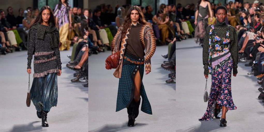 At Rabanne (I still can’t get used to the cropping of Paco), a palpably different current coming from Julien Dossena. “I was craving just to do clothes. Maybe because of the climate of the world,” he said. Instead of sending down the runway another chainmail splendor, this season he’d been inspired by looking “at how girls are dressed when I see them walking around Paris, and on the metro coming to work every day,” he said. “I was really interested in just observing people. It’s a sort of collage of stuff, mixing everything together; a personal kind of intimacy with what makes people most individual.” The pick-and-mix of it, layers upon layers of cardigans, Argyle sweaters, miniskirts, shirts, jackets, trousers, and biker overalls, was a masterclass in how to make a zillion clashing patterns work together as if you haven’t tried too hard. Très parisien.