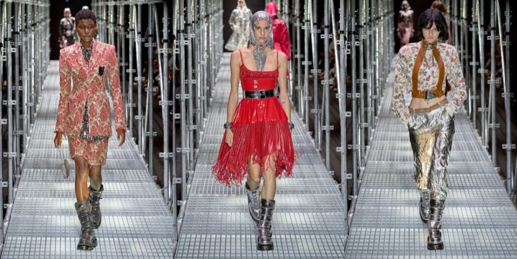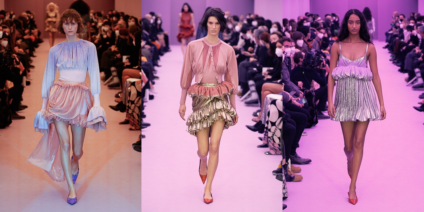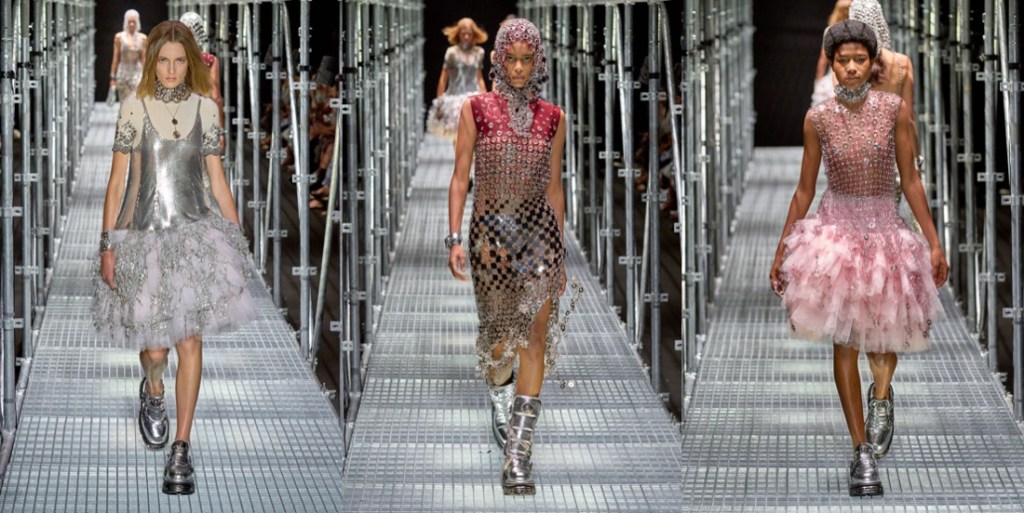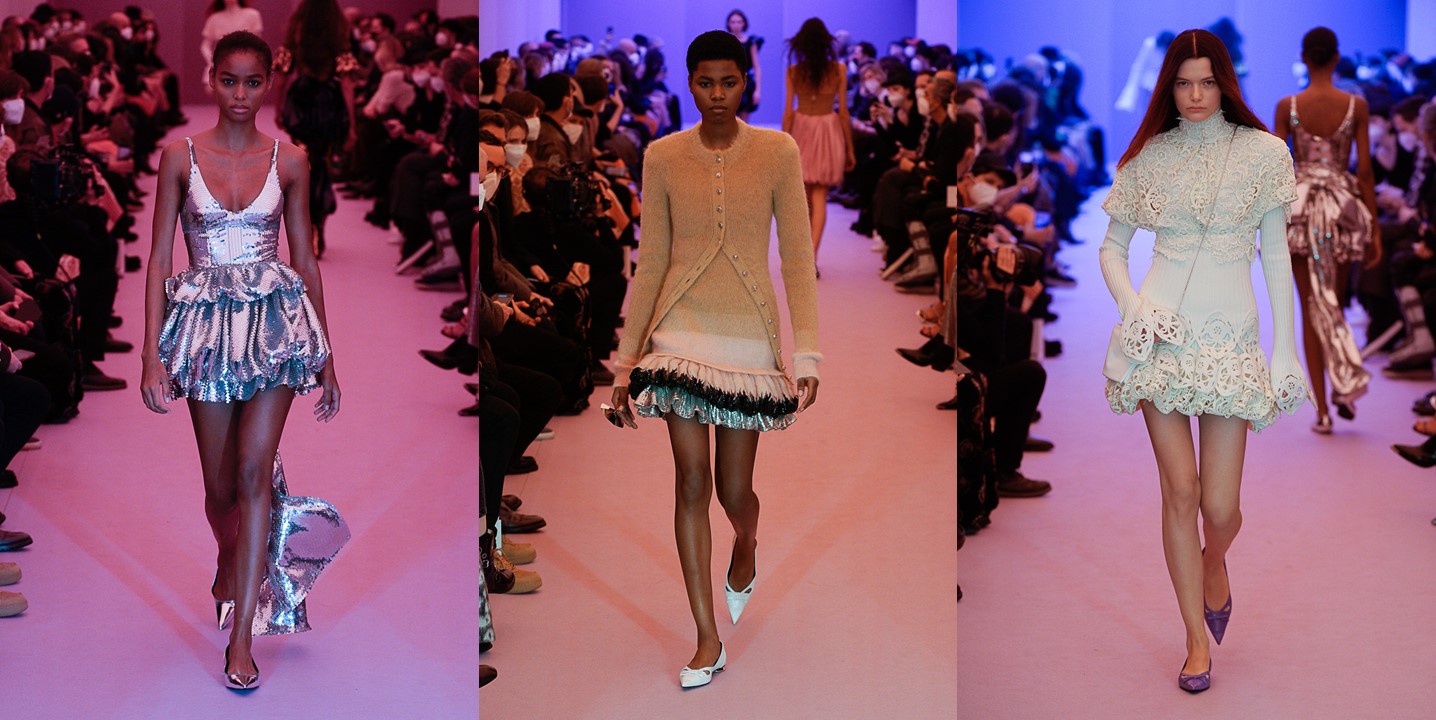 Like many designers this season, Paco Rabanne‘s Julien Dossena focused on his signatures. Spring-summer 2021 show was an impressive vocabulary of the designer’s distinct takeaways he came up with for the brand – and it ranges from clothes you would see on the streets in Paris to chain-mail craftsmanship which equals to couture. And, as a matter of fact, the runway started on an actual street. The venue had a wide-open entrance in the background – the glimpse of the street was an intentional part of Dossena’s love letter to the girls of his neighborhood, not just the need of keeping Espace Commines safely aerated for the occasion. “I realized how much I’ve been missing being in the streets, passing people, looking at their style,” he said. “I’ve always lived just near here, between the Third and the 11th arrondissements. It’s a really diverse area, with people coming from everywhere, and expressing their individuality. I wanted to work some local realness. It’s what I’ve been really happy to get back to after confinement.” Recent controversies in France have made Dossena all the more convinced that he wants to stick up for young women’s rights to dress as they please: “I wanted to show a generous, affirmative sensuality. I was really noticing women in the street who were brave enough to embrace their femininity. Wearing super-short skirts, décolleté, and being proud of it.” Without even knowing what informed that underlying subtext some of the contrasts between last season, which was staged in the grand surroundings of the medieval Conciergerie, and this one, are refreshingly apparent. There’s the new emphasis on long-line jackets and midiskirts, a mix-up of sequins and stripes, lace and lingerie tops, and the suggestion that, actually, the glittery glamour of Paco Rabanne can go just as well with jeans. “And a kind of ironic flea market feeling,” he added. Many of the women walking in his show were friends: actresses, writers, interns, junior designers, students. Most definitely, everyone who was French in the house would have been conscious of the relevance of Dossena’s crop tops and the fact that he’d very visibly implanted bra cups into his complicated lace slip dresses. Since schools returned in September, a national row broke out when teenage girls were turned away from schools for wearing cropped tops and short skirts. The girls – protesting against being gaslighted for indecency and provoking boys – started a hashtag calling for all high school students to turn up to school on September 14 wearing something provocative. “It’s just so old-fashioned, these attitudes in France,” Dossena says. “These girls were really rioting. I’m so impressed by them.” Most definitely in the grown-up and otherworldly zone was the procession of all over pailletted, helmeted women who ended Dossena’s show – feminist guardian warriors, if you will. “If you look, some of the triangle paillettes are like knives, like a weapon. It’s quite a tough realness,” Dossena smiled. “We are definitely not about doing comfy bourgeois collections here.”