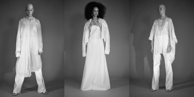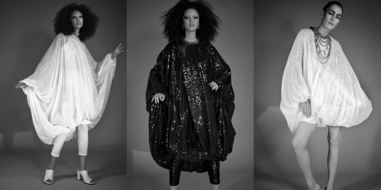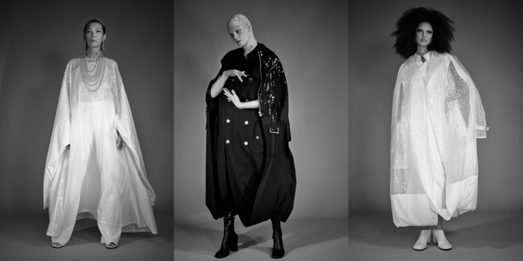 Disco is having a rebirth in music – just think of Jessie Ware, Róisín Murphy or Dua Lipa’s latest records. During lockdown, we’ve all dreamed of a care-free party, so no wonder why some designers chose this escapist, joyful theme for the spring-summer 2021 collections. Discussing his latest outing, Junya Watanabe’s press notes said, “It is a collection that reproduces the costumes worn by the stars in my memories. My memories are monochrome, and I created a photo session with four fictional stars.” The black and white images feature an assortment of apparently black or white looks, plus one or two more in silver. Nearly all of them are sparkling with sequins dresses that get the party started. The 1960s A-line gowns that close the look book, but also the trenchcoats that are integral to Watanabe’s oeuvre, have a disco noir feeling about them. Last season Watanabe paid punkish tribute to Debbie Harry. Though the Spangles may owe a debt to the Supremes, these muses are more abstract. In its spotlighting of sequins, the collection feels of a piece with earlier Watanabe shows that had singular focal points of their own, like army fatigues and puffers. His new season clothes have an easy-to-wear aspect that many have keyed into in this COVID year. I’s a whole lot of caftan-like shapes and leggings, essentially and a stripped-down outing by house standards. The most complex shapes were the coats whose hems looped up, creating generous volumes. But in tricking everything out in spangles Watanabe turned the concept of #WFH-wear on its head. Comfort, he gets. Hibernation? Not so much. Sequins are associated with happier times. If and when the world opens up, Watanabe’s women will be ready to loose themselves on the dancefloor.