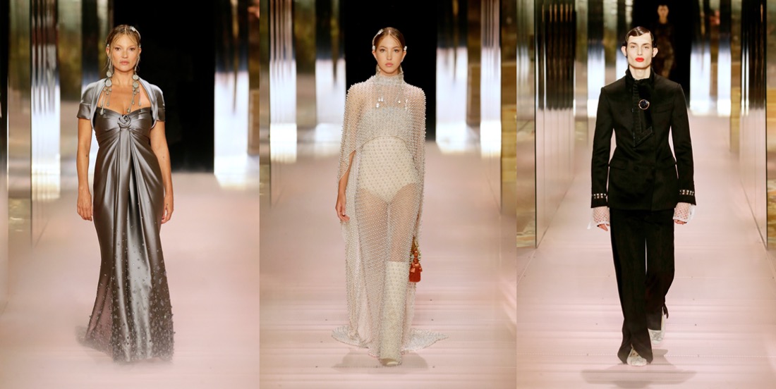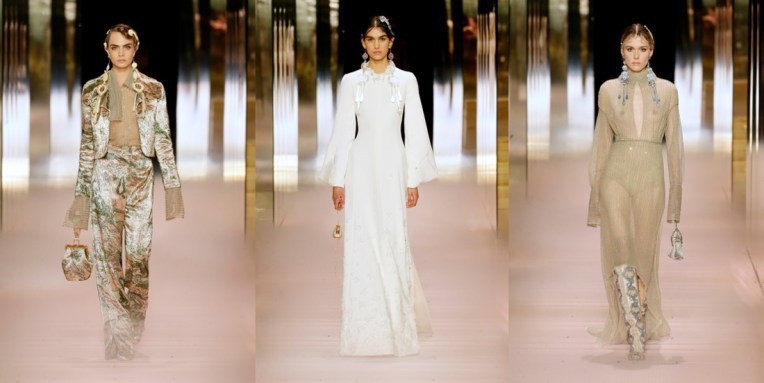 Kim Jones‘ big debut at Fendi‘s womenswear hit off with a haute couture show. You might know that I wasn’t his fan at men’s Louis Vuitton, and I’m not overly obsessed with his current Dior menswear venture. So I didn’t expect much from his arrival at Fendi. The spring-summer 2021 couture show is an example of a fashion spectacle, where everything wows the viewer except the actual clothes. First, the literary and artistic sources that shaped Kim’s Fendi line-up started in Charleston Farmhouse, the 16th-century Sussex retreat of the Bloomsbury set located not far from the village of Rodmell, where the designer was partly raised and owns a house. Young Jones would spend school trips exploring the house and learning about Bloomsbury’s bohemian members. Those dreamy stories stayed with him. Second, his Fendi collection showed a demonstration of how Jones expresses himself in form and decoration in womenswear. Of carving out that silhouette, Jones said he observed “the reality of what women around me are wearing. I have friends that just buy couture clothes, and they don’t buy big ball gowns. They buy real clothes, things that fit their bodies.” Above all, he wants to create work “reactive to the time we’re living in.” And three, enter ‘Orlando’, Virginia Woolf’s time-traveling tale of androgyny and fashion’s favorite lexicon for the study of genderlessness. “’Orlando’ was published in 1928, and Fendi was founded in 1925,” he pointed out. The “journey from Bloomsbury to Borghese” interpreted Vanessa Bell and Duncan Grant’s frescoes of Charleston in hand-beaded prints and the marbles of the Galleria Borghese in painted tailoring, meanwhile dresses evoked the wet drapery of its Bernini sculptures. It all sounds delightful and thorougly considered, but the effect was overcharged, heavy and most of the time, simply unflattering. In the prerecorded show, Jones echoed ‘Orlando’’s themes in a coed cast featuring many of his high-profile friendships: Demi Moore, Kate and Lila Moss, Christy and James Turlington, Adwoa and Kesewa Aboah. The family constellations celebrated Fendi’s values as a matriarchal fashion dynasty, whose class-act custodian, Silvia Venturini Fendi, still serves as artistic director of accessories and menswear. Joining the cast were her daughters, Leonetta Fendi and jewelry designer Delfina Delettrez, whom Jones has now named as creative director of the brand’s jewelry. Delettrez’s supersized murano glass chandelier earrings accompanied each look, and must have been heavily inspired by Romeo Gigli (if this name doesn’t ring a bell, you better Google him!). Tailoring felt more rigidly structured for male anatomy, framed by floor-sweeping capes. At times, forms grew shapeless, like a pink look of highly textured layers topped off with a lace coat webbed from roses or a mound of marbled garments draped over Naomi Campbell (I love Naomi. But this look didn’t serve her at all – she drowned in it!). Jones’s juxtapositions culminated in split-personality dresses hybridized from half an evening gown and half a blazer or shirt. The inspiration was found in the sketches of his predecessor, Karl Lagerfeld, who left 54 years’ worth of archives behind him when he died two years ago. Lagerfeld’s Fendi was epitomized by Roman modernism, a handsome glamour that often found time for quirk. Jones’s approach was romantic (and suffocating) melancholy in contrast. Of course, most ‘major’ debuts go wrong. It’s the beginning of a new chapter at Fendi, and I’m looking forward to see what Jones will bring next to the table.