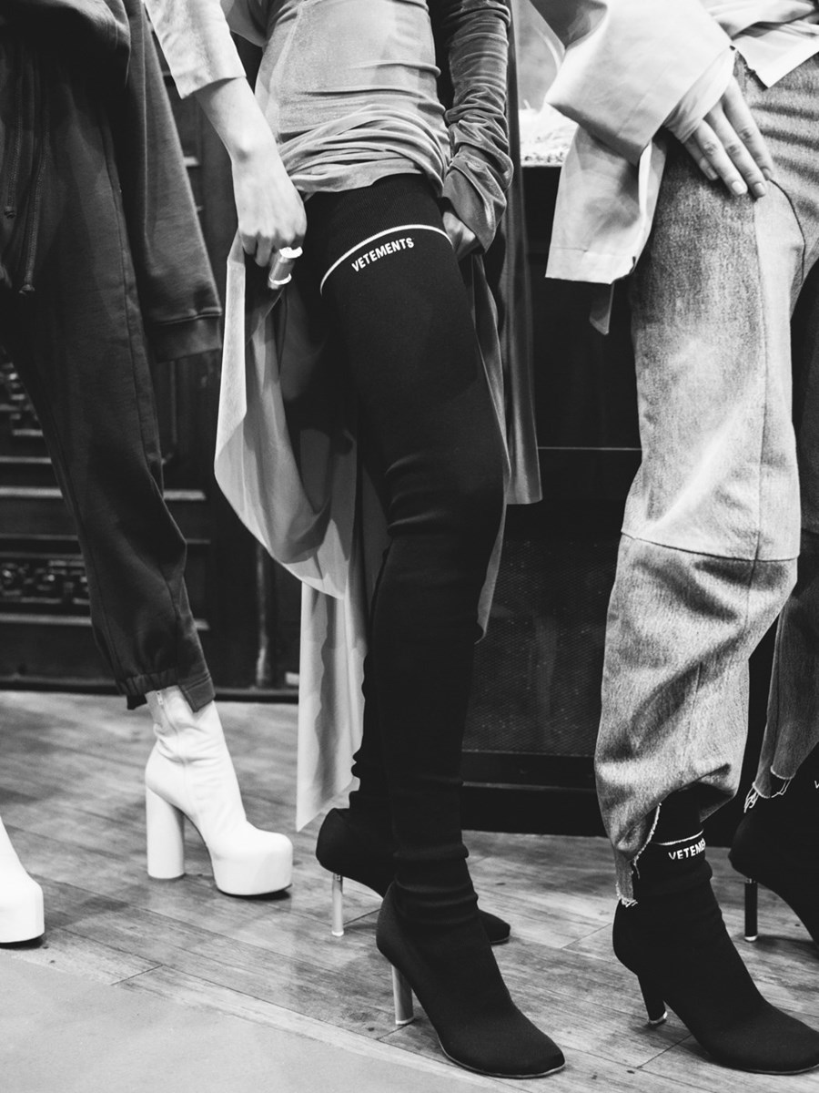 “To dive in this gothic sea of inspiration!” he began. “The punk, the Victorian, the eccentric—with this inspiration, I can work all my life!” The former, origing from Vivienne Westwood’s rebellious times of SEX boutique and Sex Pistols costumes, was reflected in tartan ball gown and badass, yet classy attitude of the clothes. One of the jackets was a perfect Victoriana sleeve sample, but all in baby-pink astrakhan fur; Thatcher-era Kensington grannies crossed the abbey during the show, wearing printed silk dresses and foulards on their heads; there was even a Spice Girl moment which will be remembered for long in the industry – rainbow striped platform sneakers HAPPENED, spicing it all up. It’s not a surprise that Alessandro thought of Scottish kilts, too – they were worn casually with lady-like, blue pea-coats. Chic, right?
